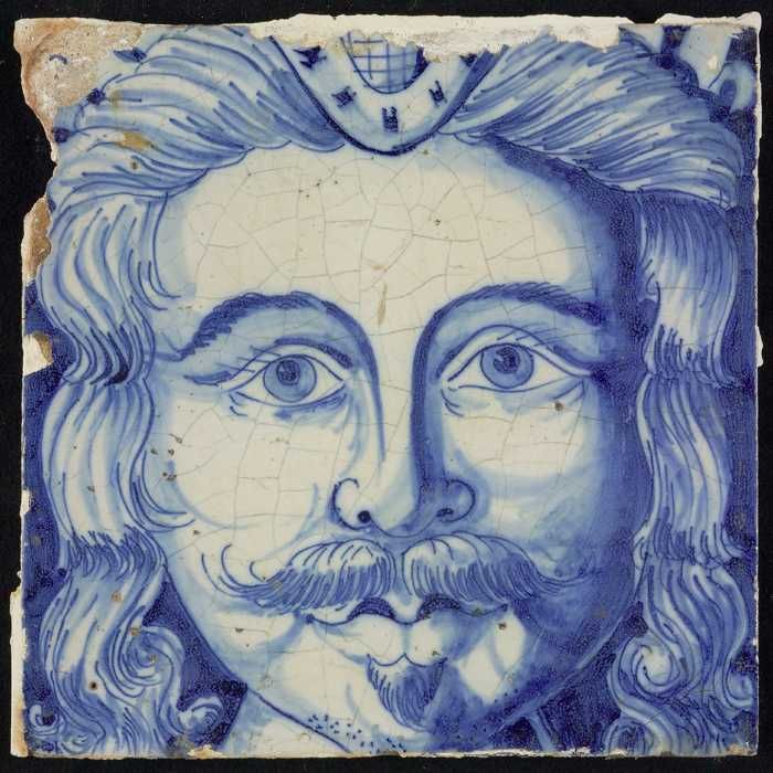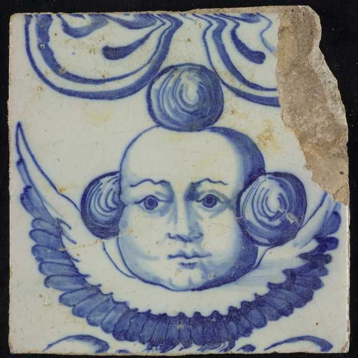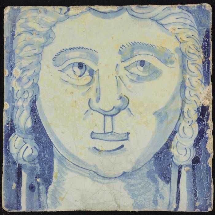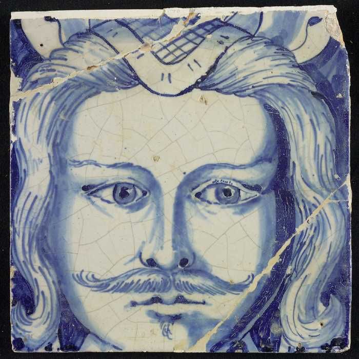 Tegel van schoorsteenpilaster, blauw op wit, hoofd v...