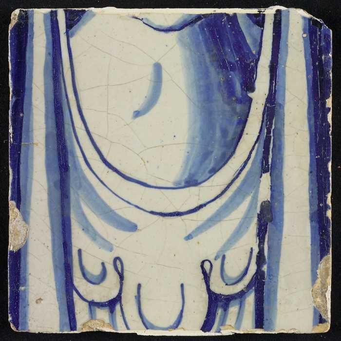 Tegel van schoorsteenpilaster, blauw op wit, kin en ...