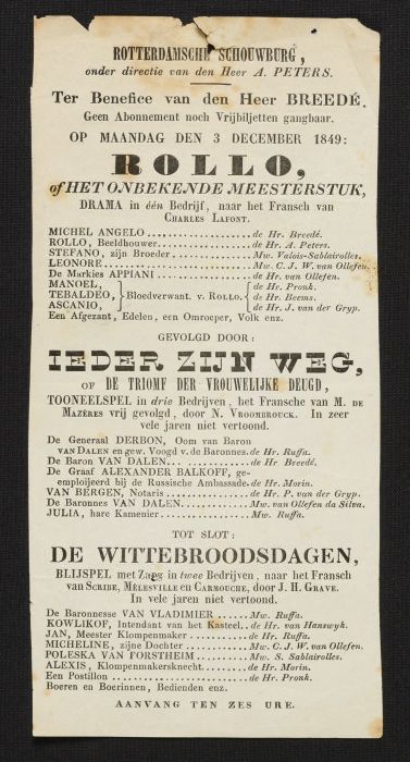 Programma van het drama "Rollo", het toneelstuk "Ied...