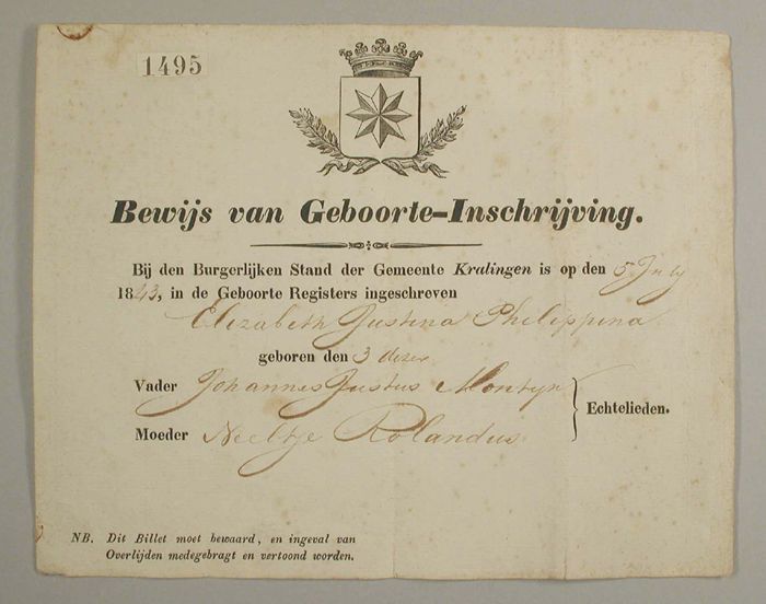 Geboortebewijs van Kralingen, waarin wordt verklaard...