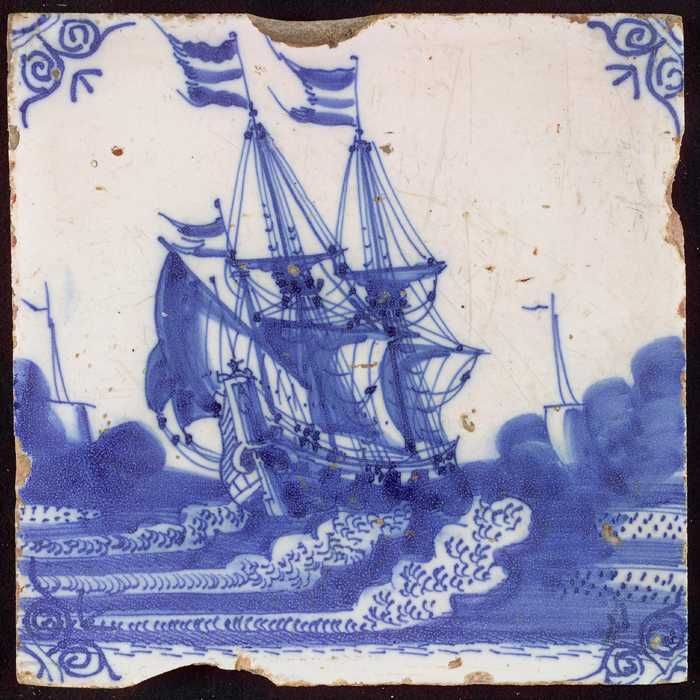 Tafereeltegel, driemaster op de golven, hoekmotief o...