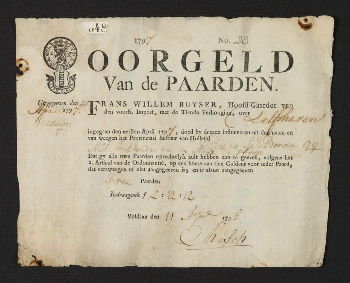Belastingbiljet: Jacob van Hattinge gelast de weduwe...