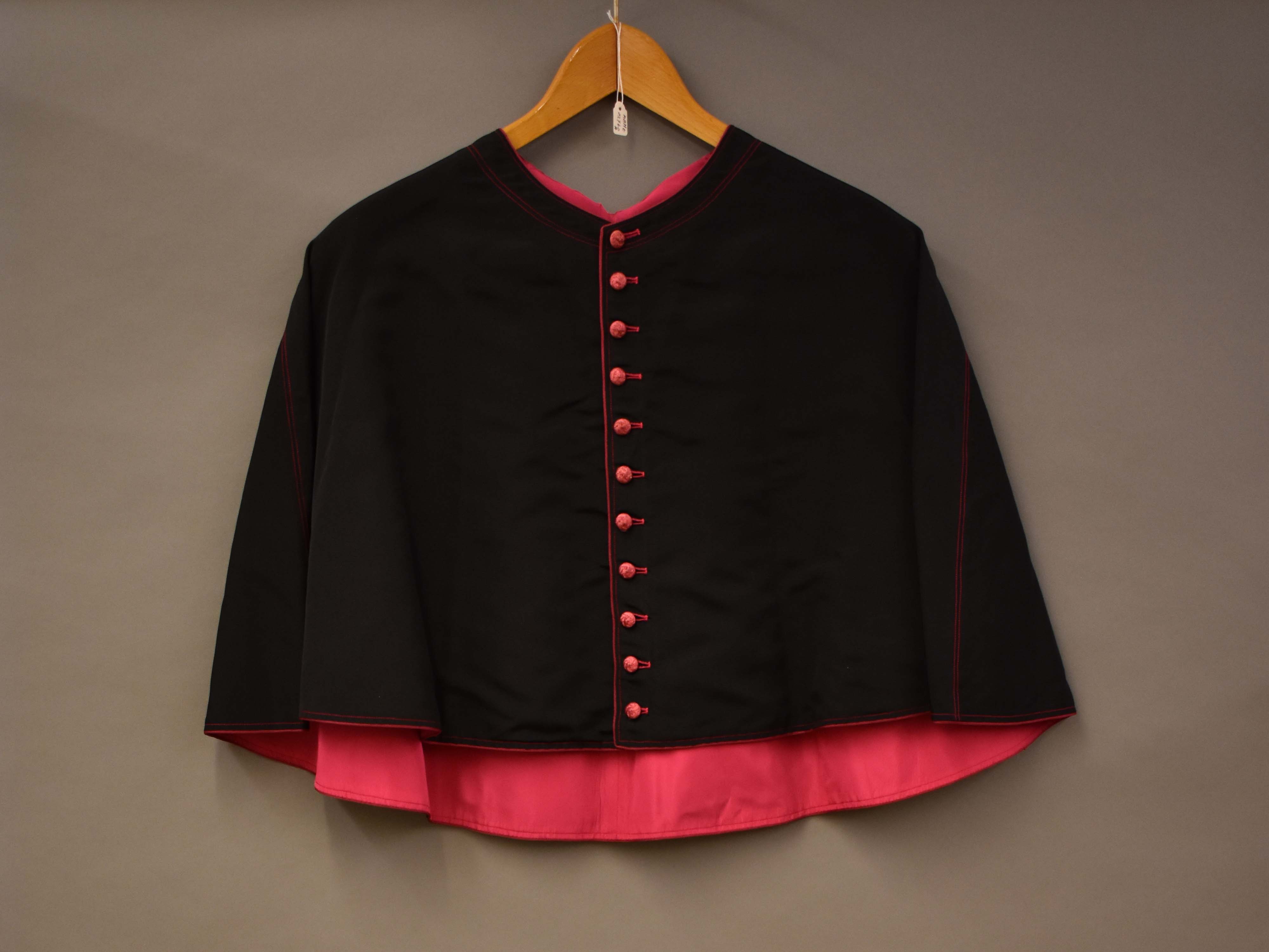 Zwarte mozetta met paarse voering, boordsel en knope...