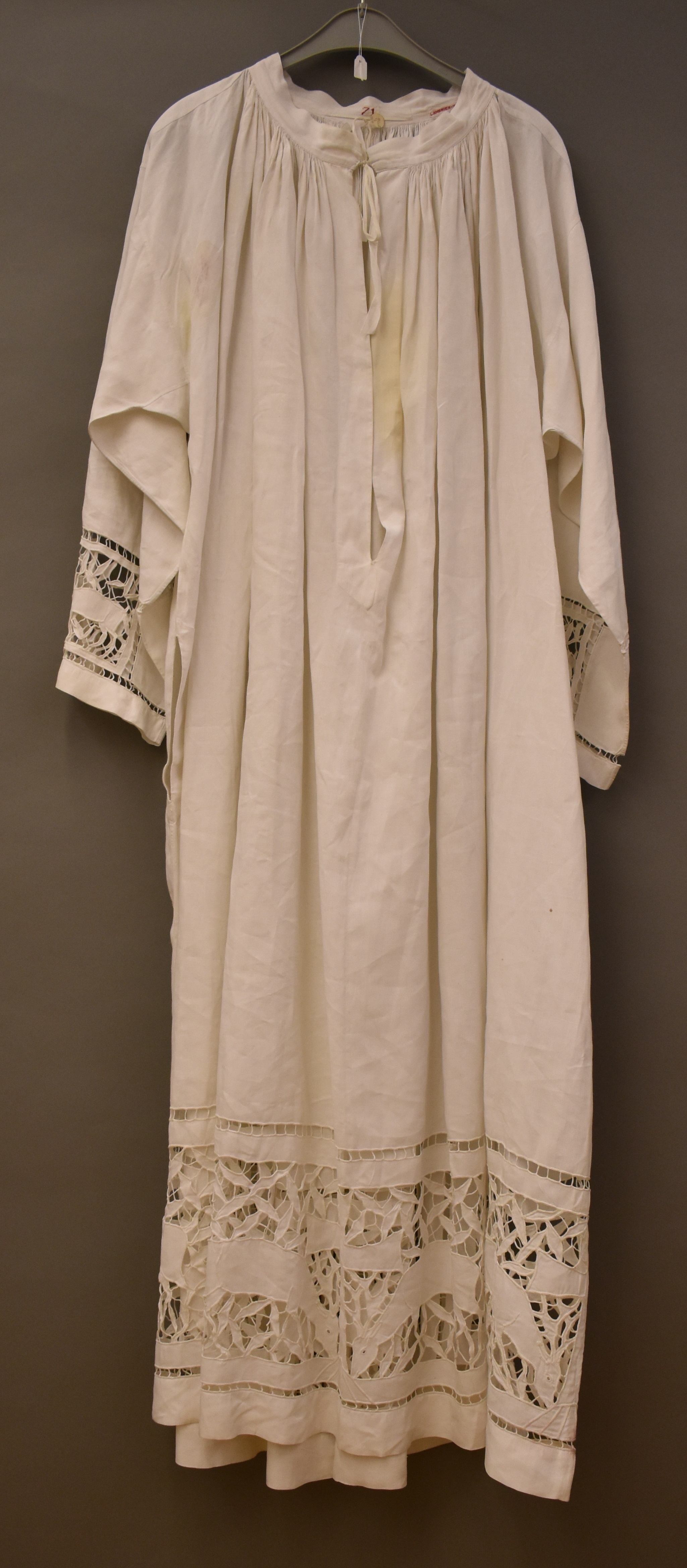 Albe met richelieuwerk met twee herten ter weerszijd...