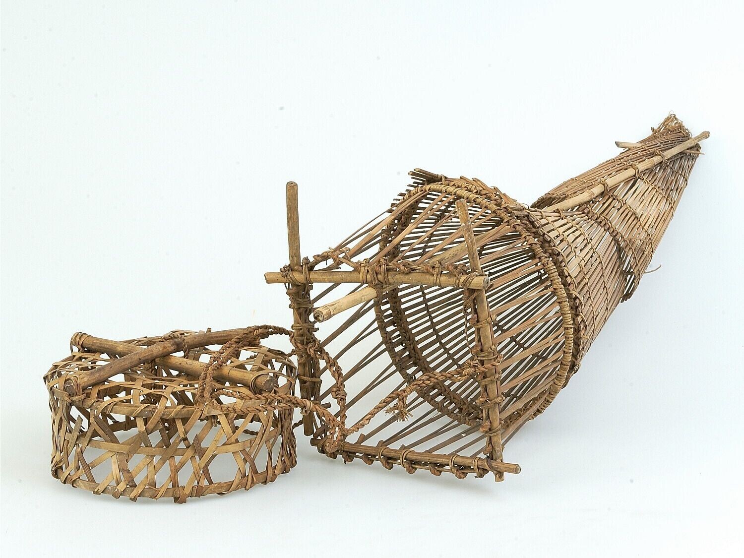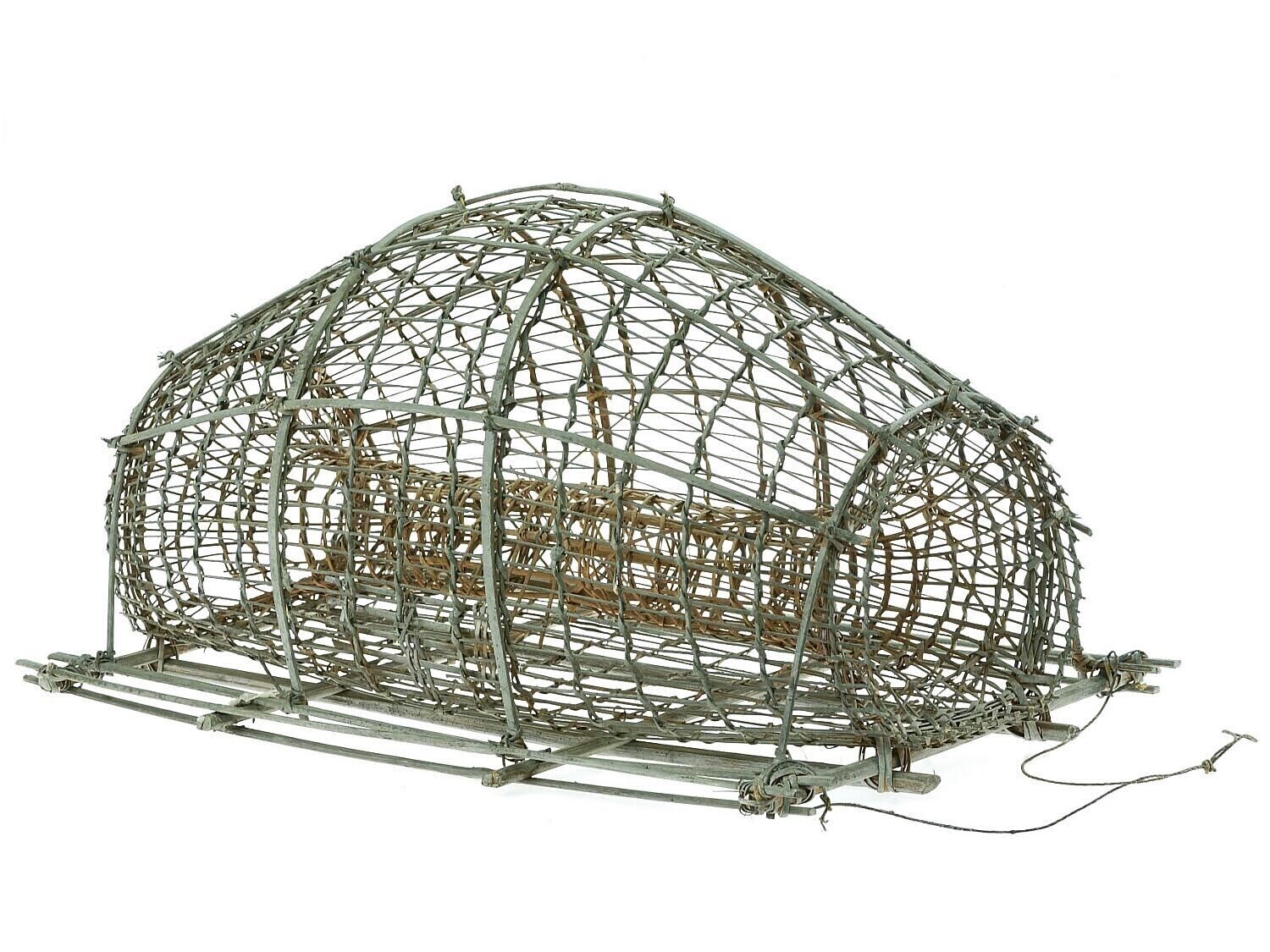 Gevlochten model van een fuik van bamboe en rotan