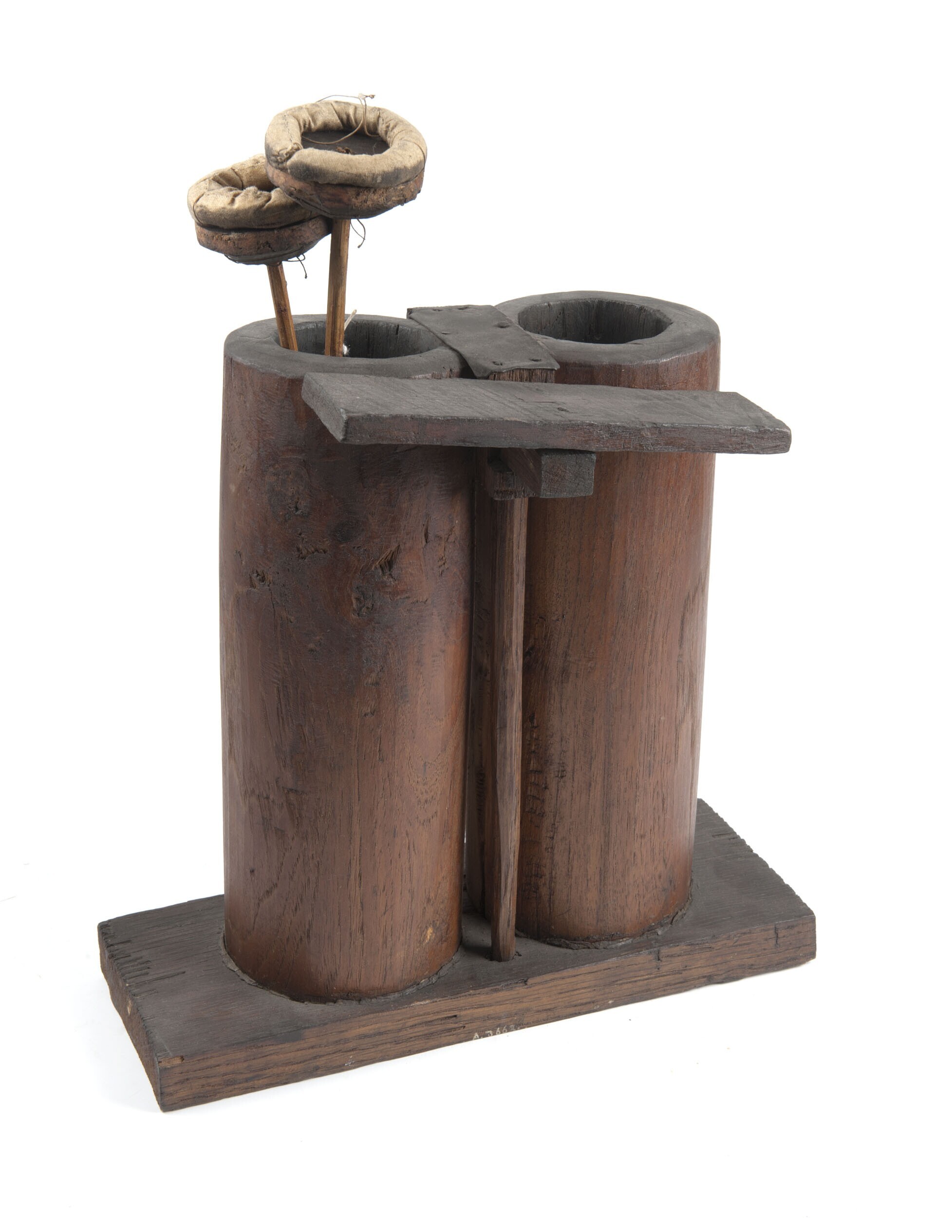 Model van een rijststampblok met stamper