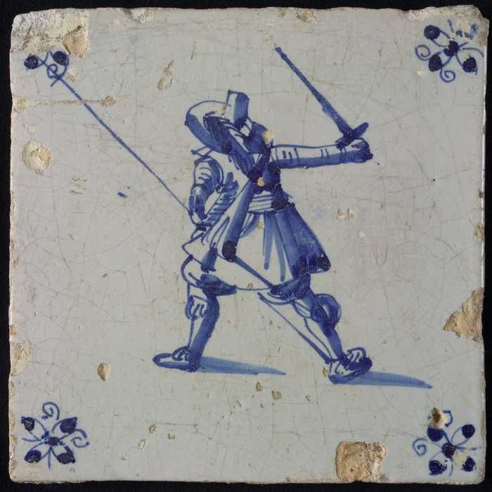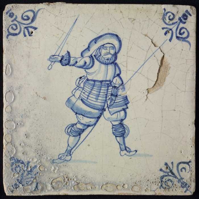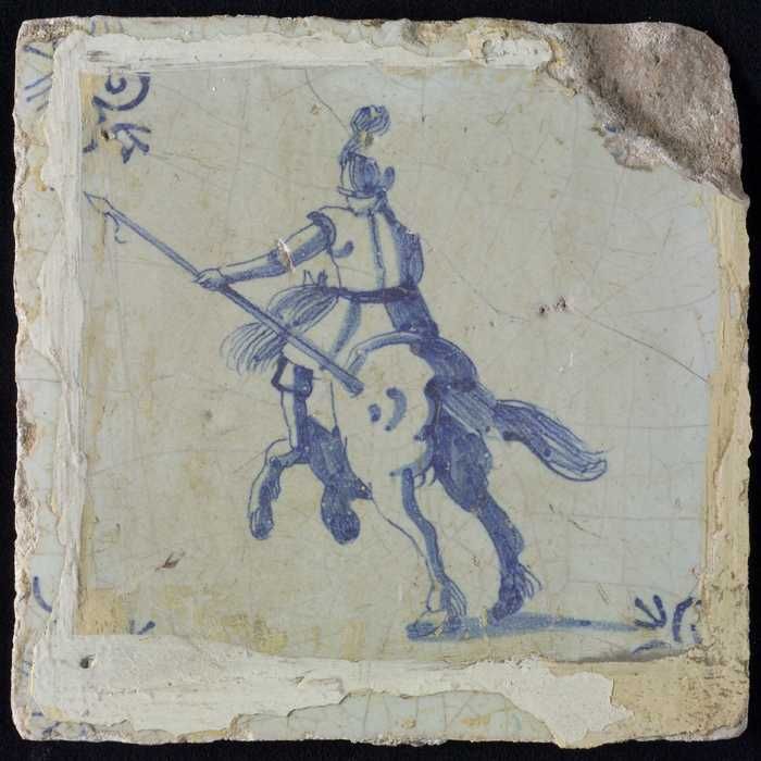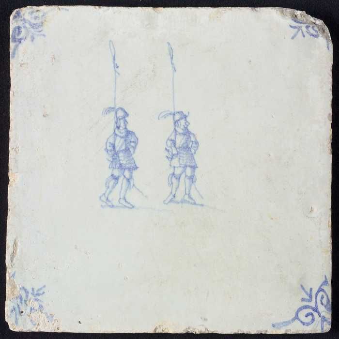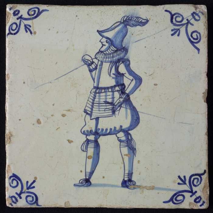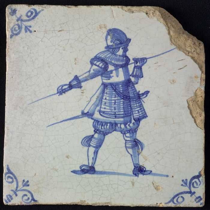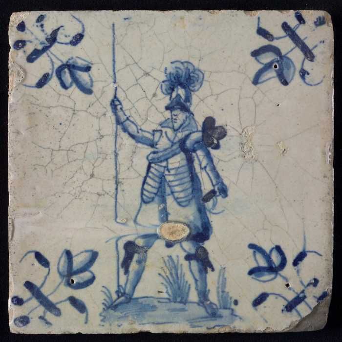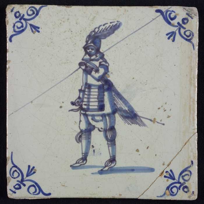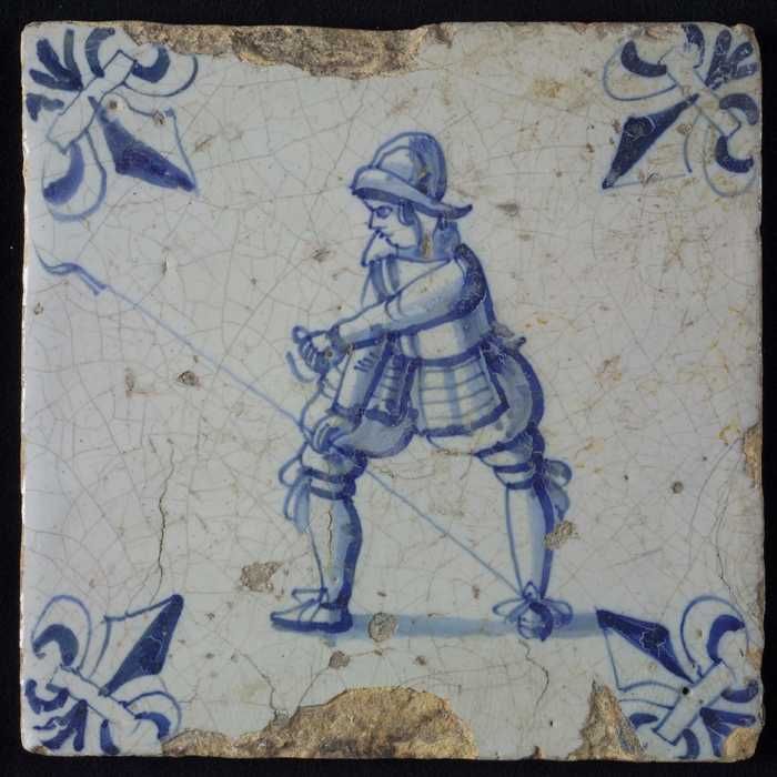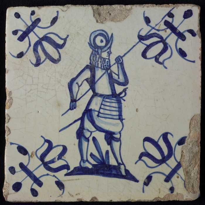 Figuurtegel, krijgsman, twee tinten blauw, hoekmotie...