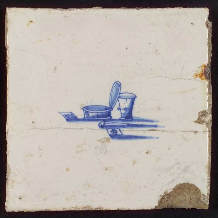 Witte tegel met blauwe krijgsman, hoekmotief lelie