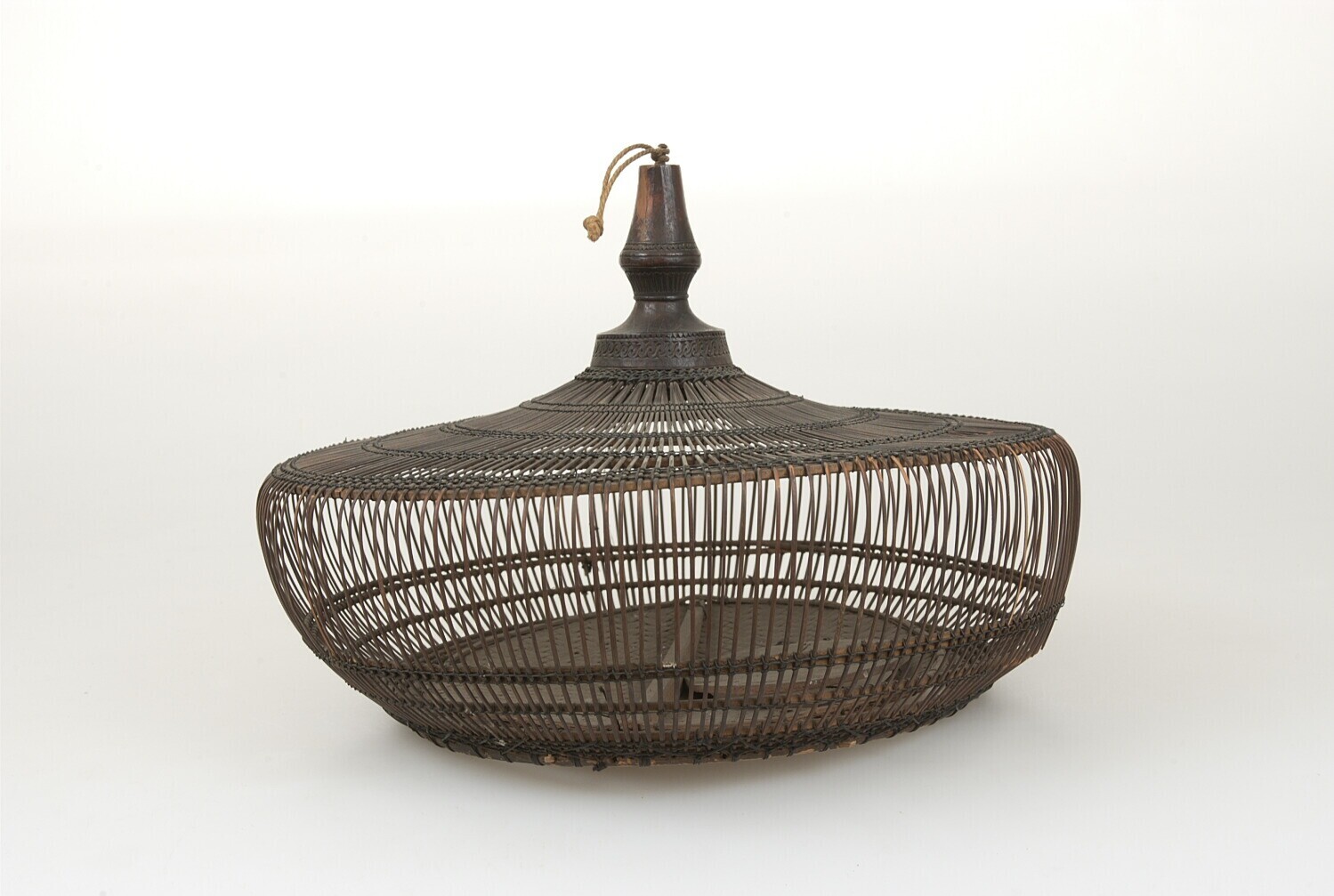 Gevlochten duivenkooi van bamboe en hout