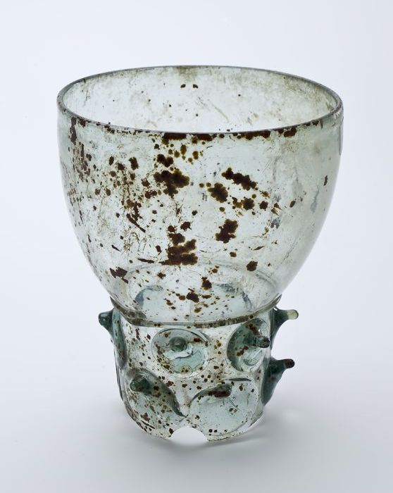 Fragment van voet, bodem en kelk van bekerglas