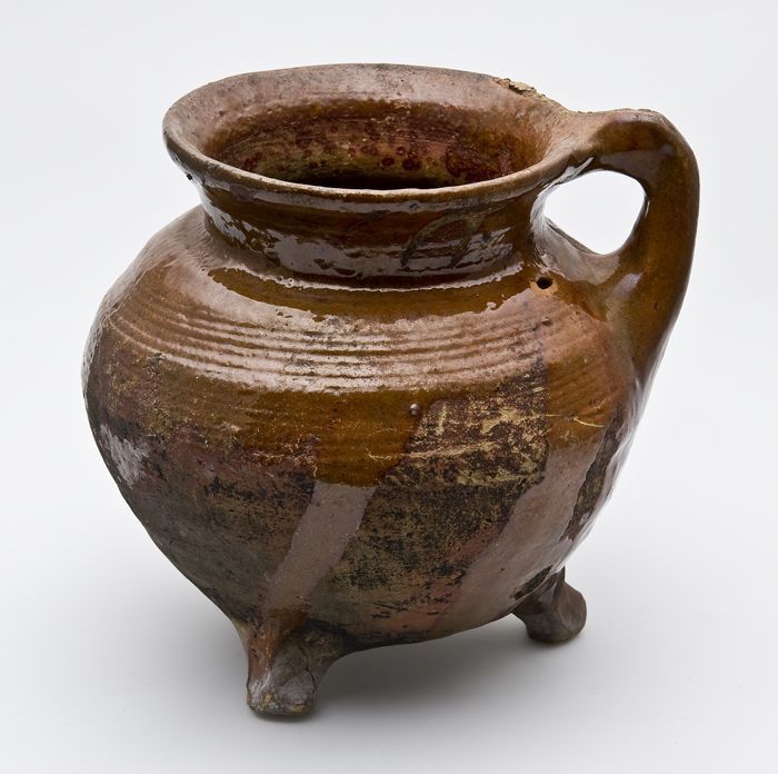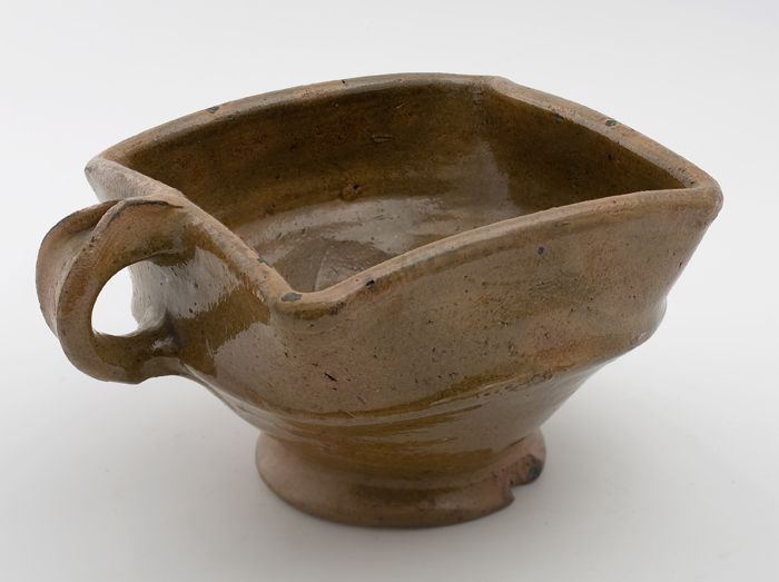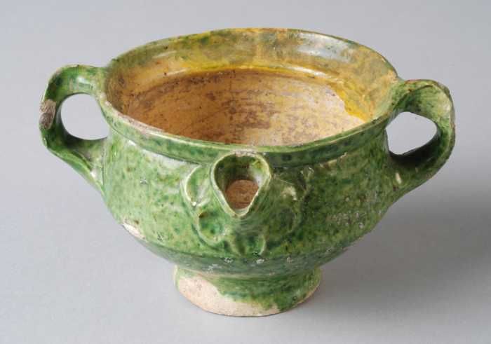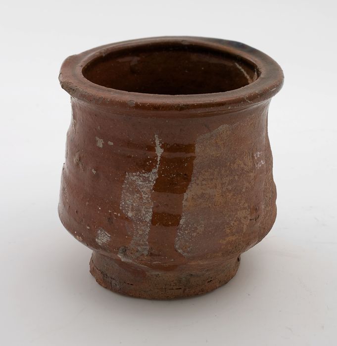 Aardewerk kookkan, grape-model met bandoor en schenk...