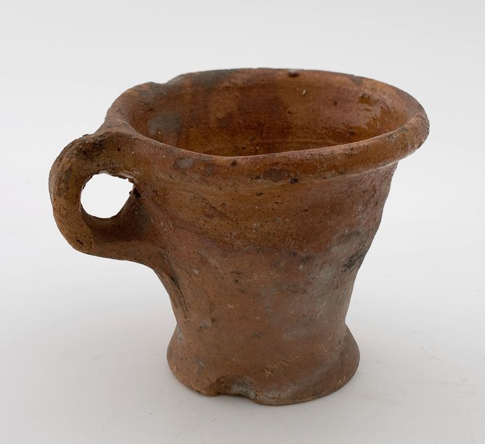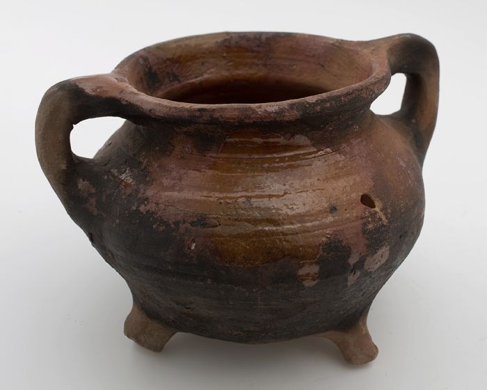 Aardewerk kookpot, grape-model, rode scherf, spaarza...