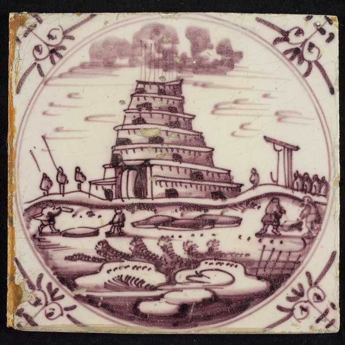 Tafereeltegel, toren van Babel, hoekmotief ossenkop