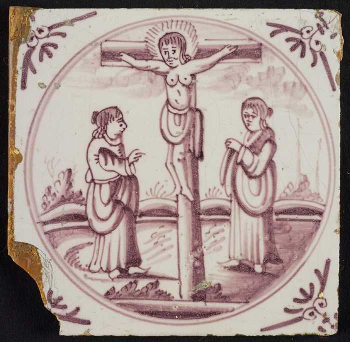 Tafereeltegel, Jezus aan het kruis, hoekmotief ossenkop