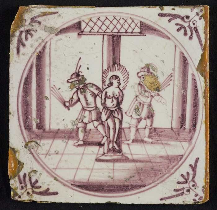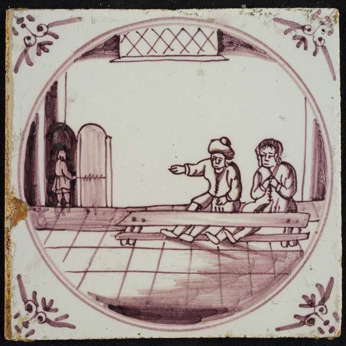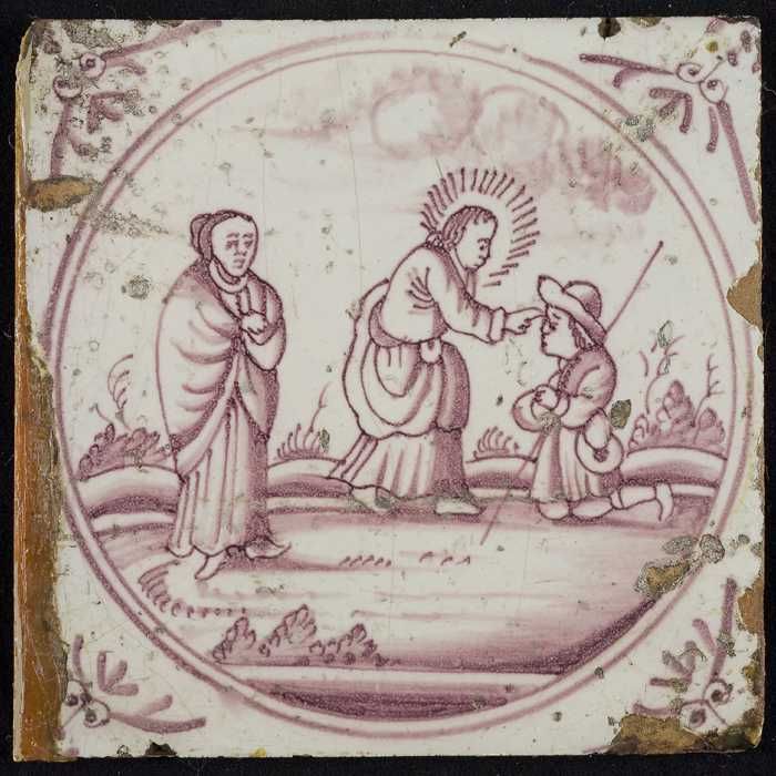 Tafereeltegel, de genezing van twee blinden, hoekmot...