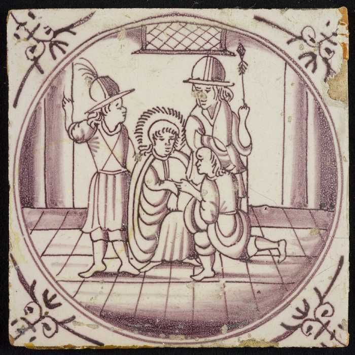 Tafereeltegel, Jezus in de hof van Getsemane, hoekmo...
