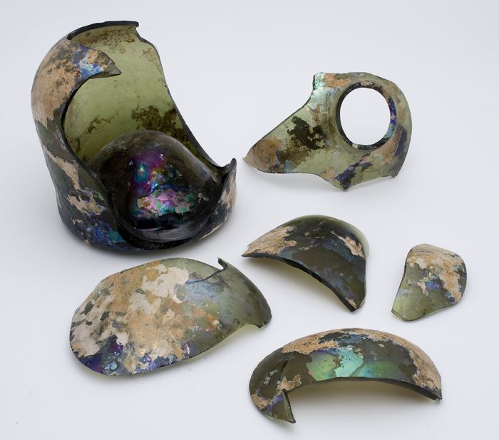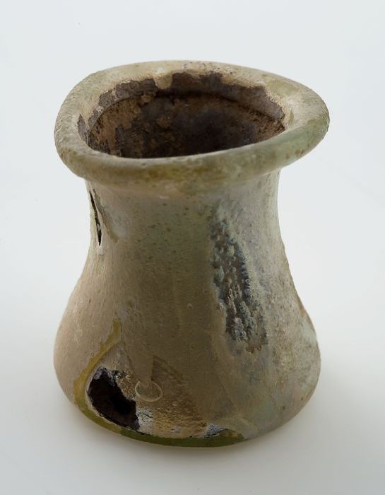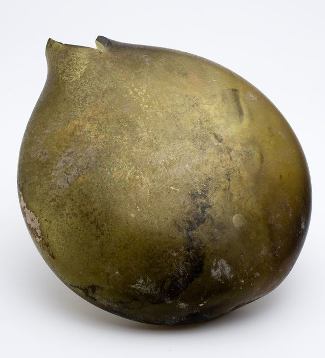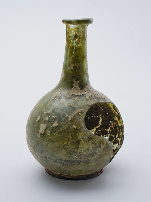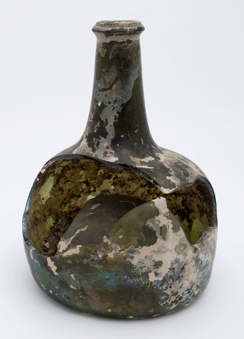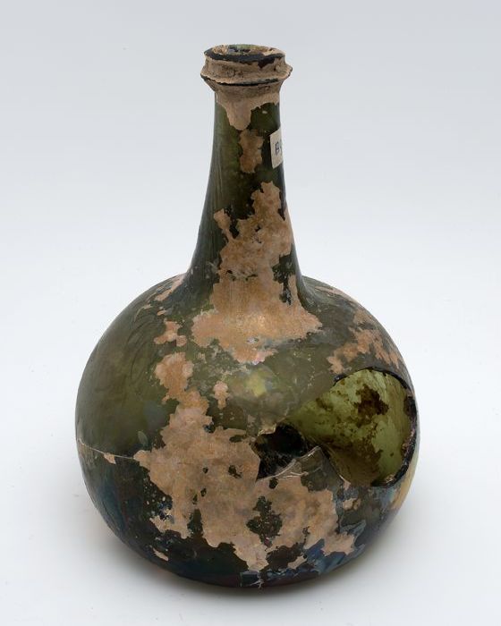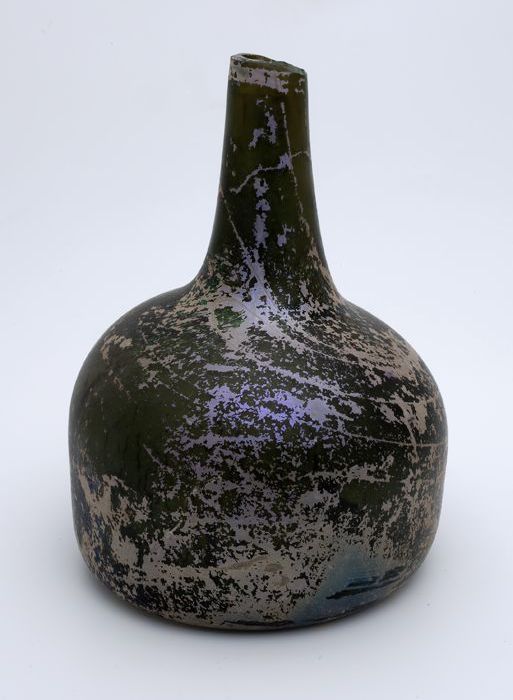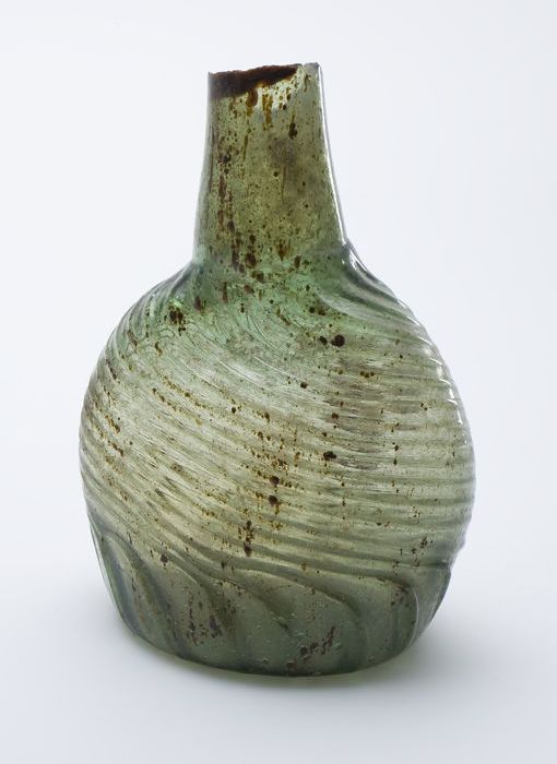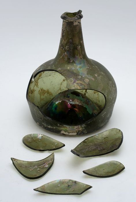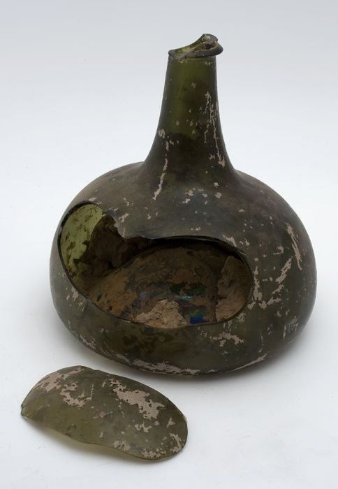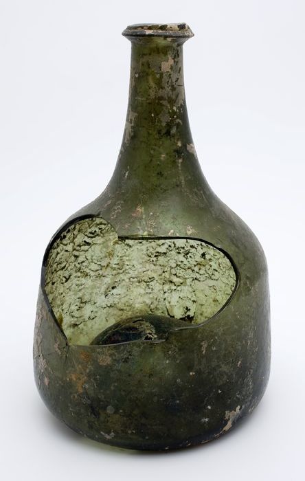 Groene rondbuikige fles (fragmenten), 'klokmodel'