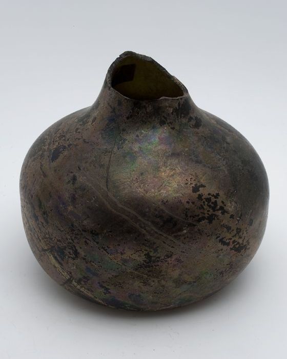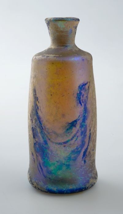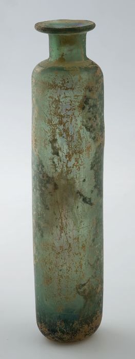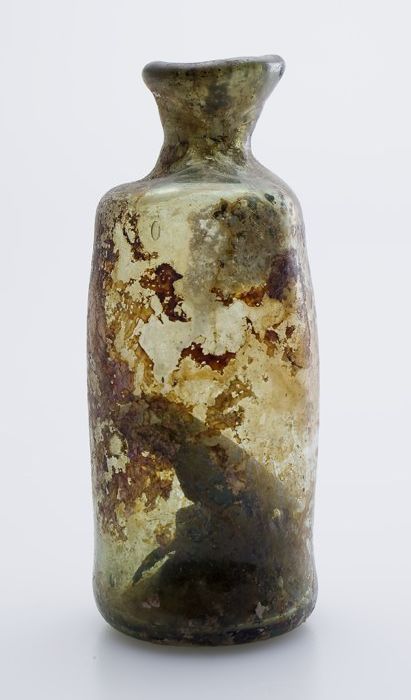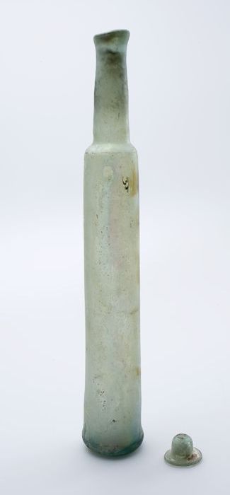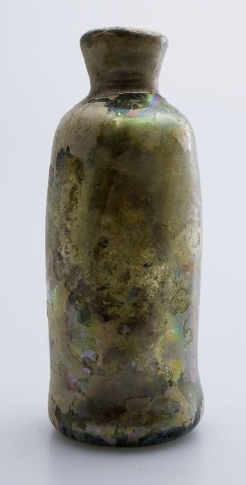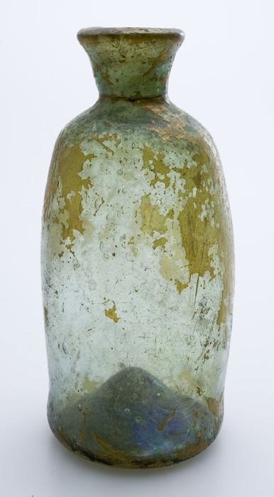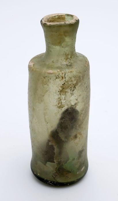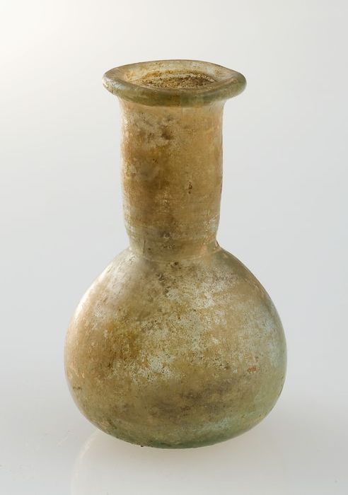 Kleine buikfles met lange hals en omgeslagen halsrand