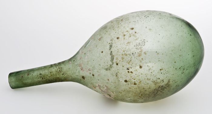 Eivormige fles van helder licht groen glas