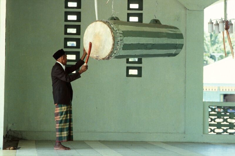 Pounding the drum to call the people to the mosque f...