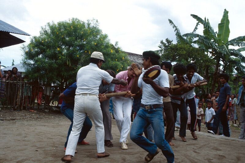 Men at Kota Ambon (Taman Wisata) showing a dance of ...