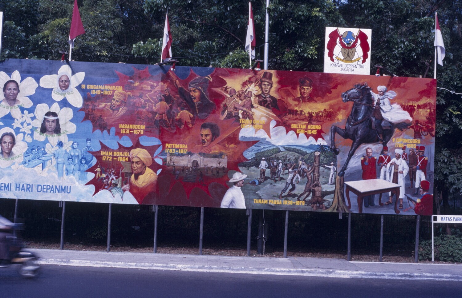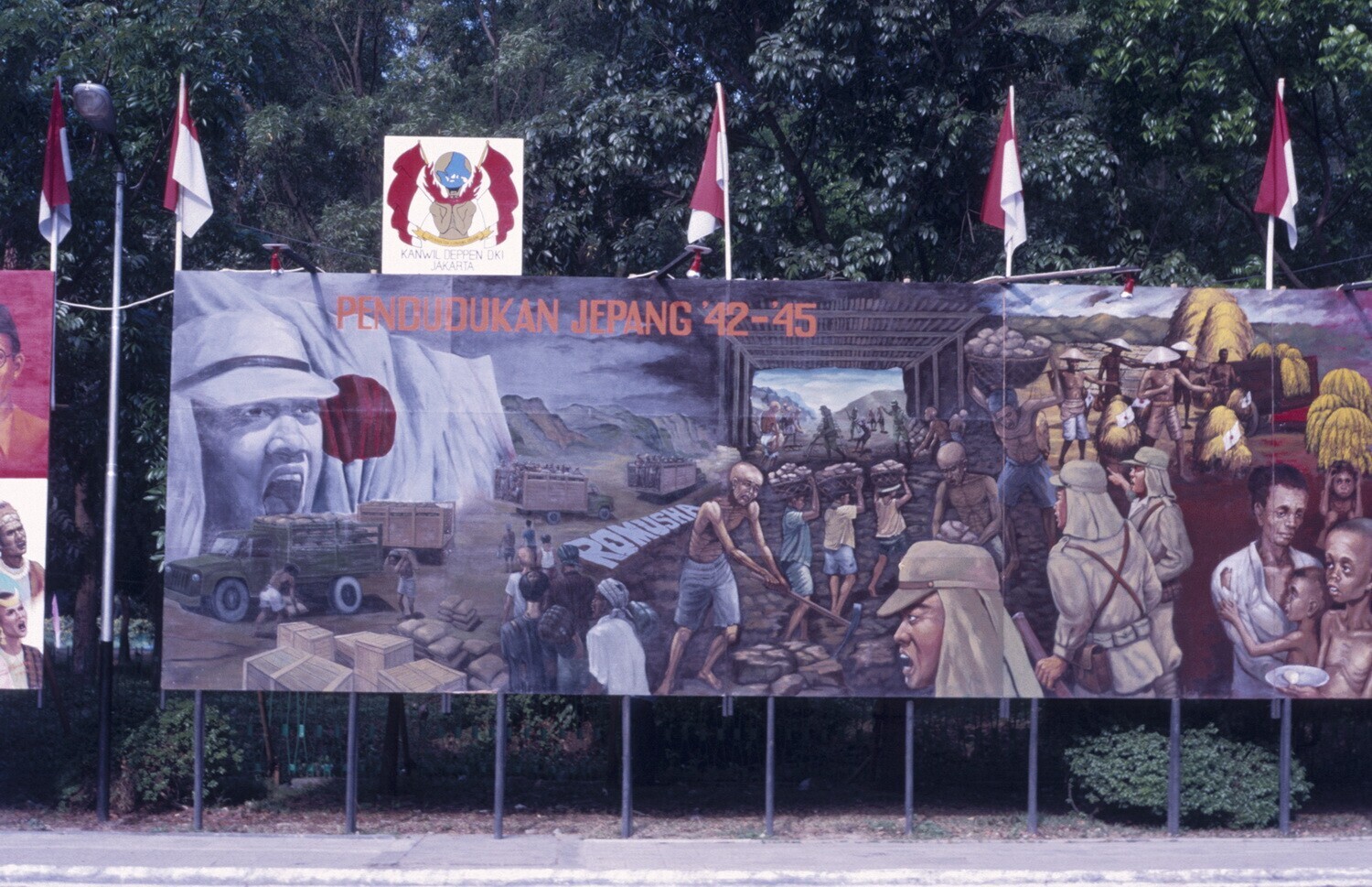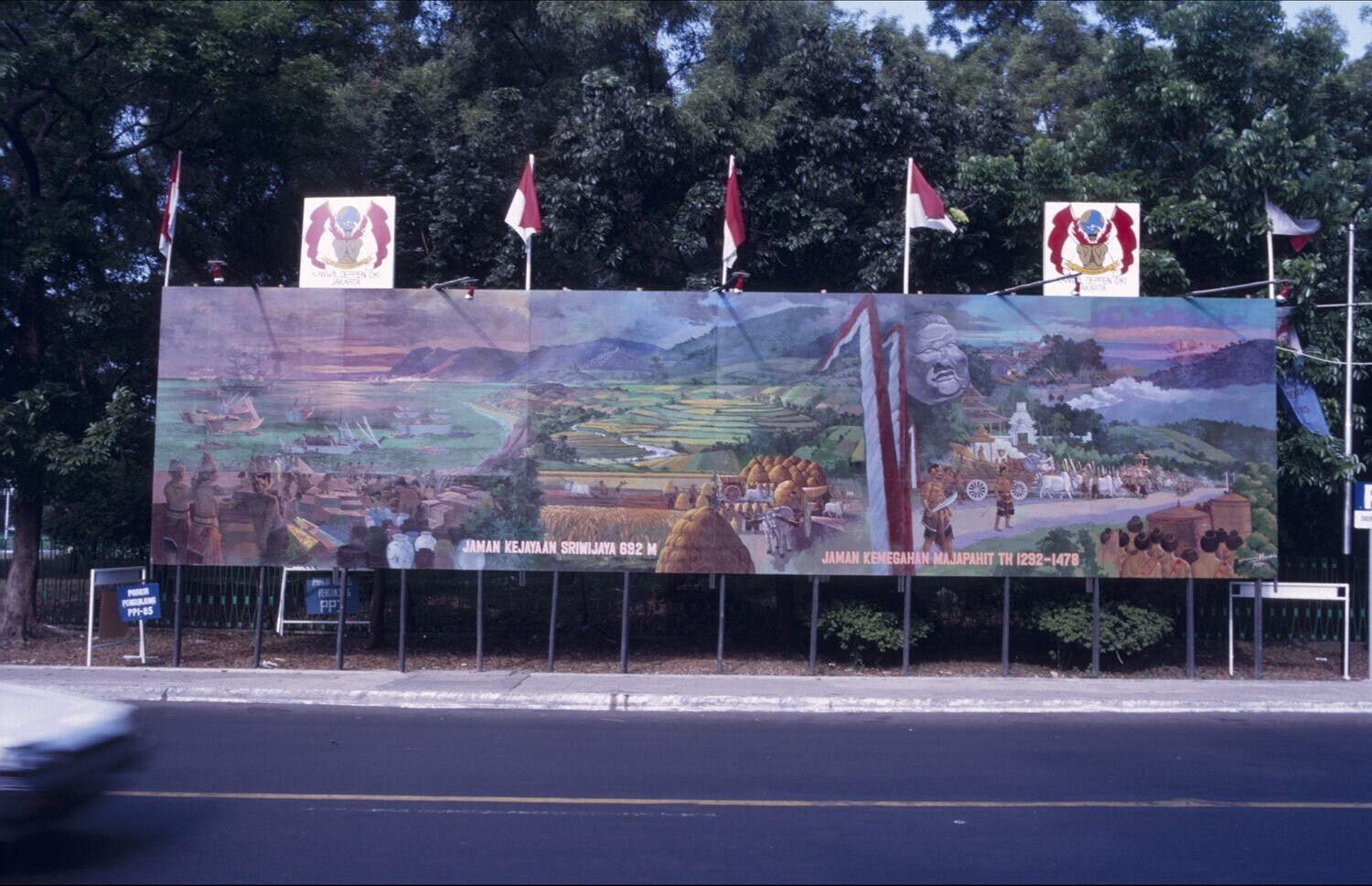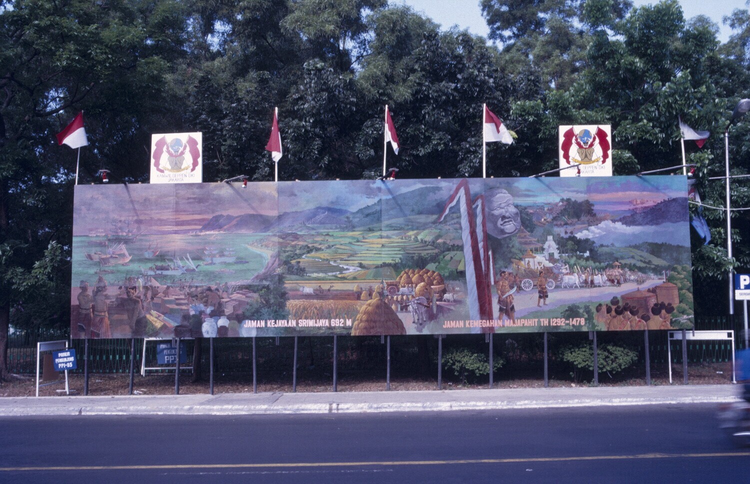 Bord met foto's over de geschiedenis van de Indonesi...