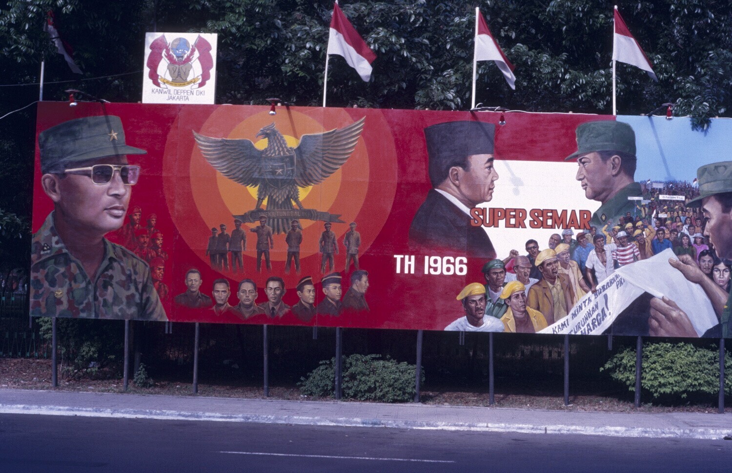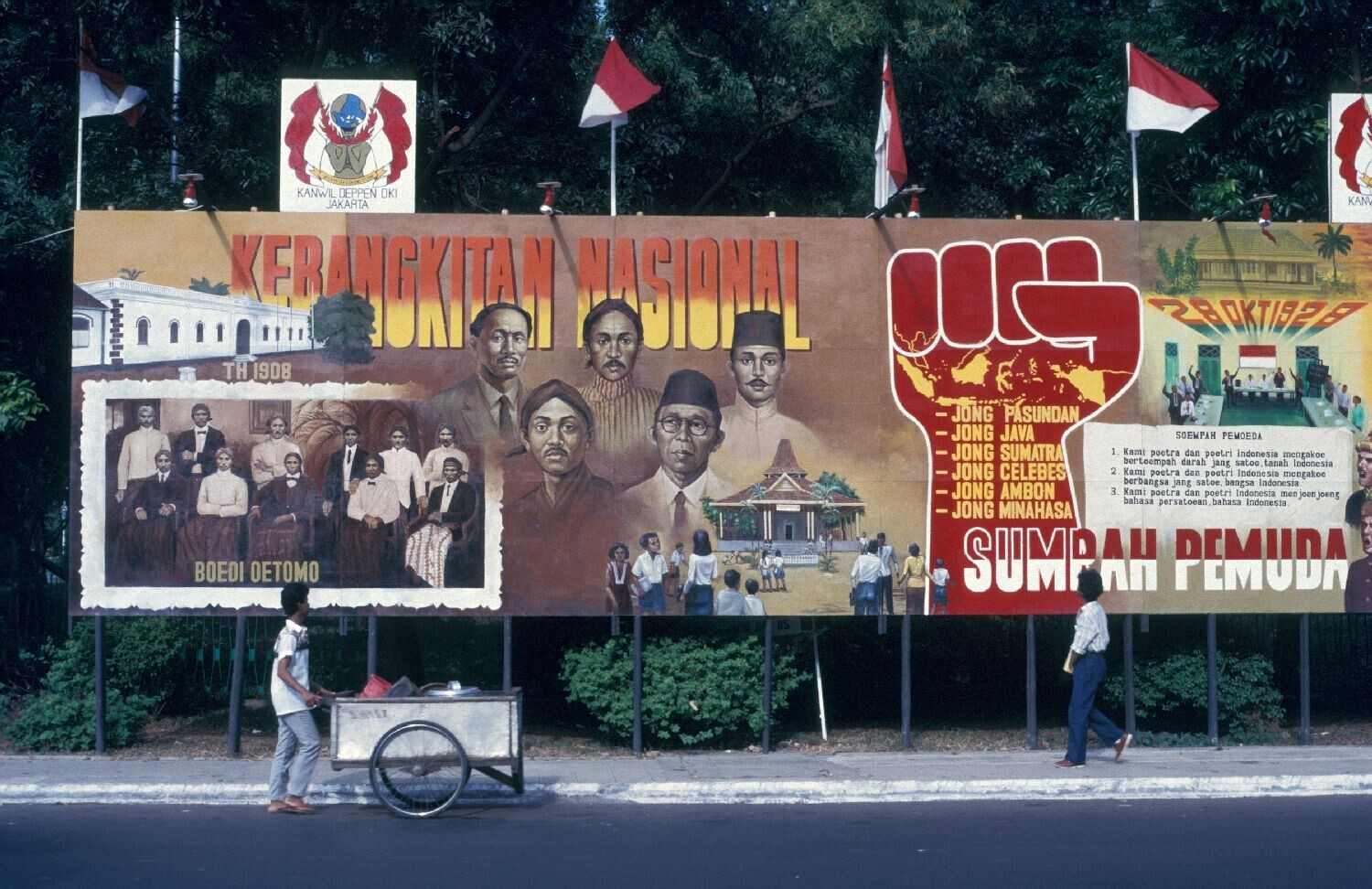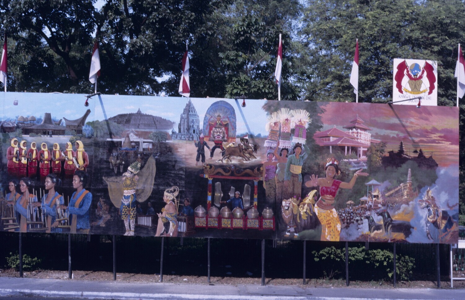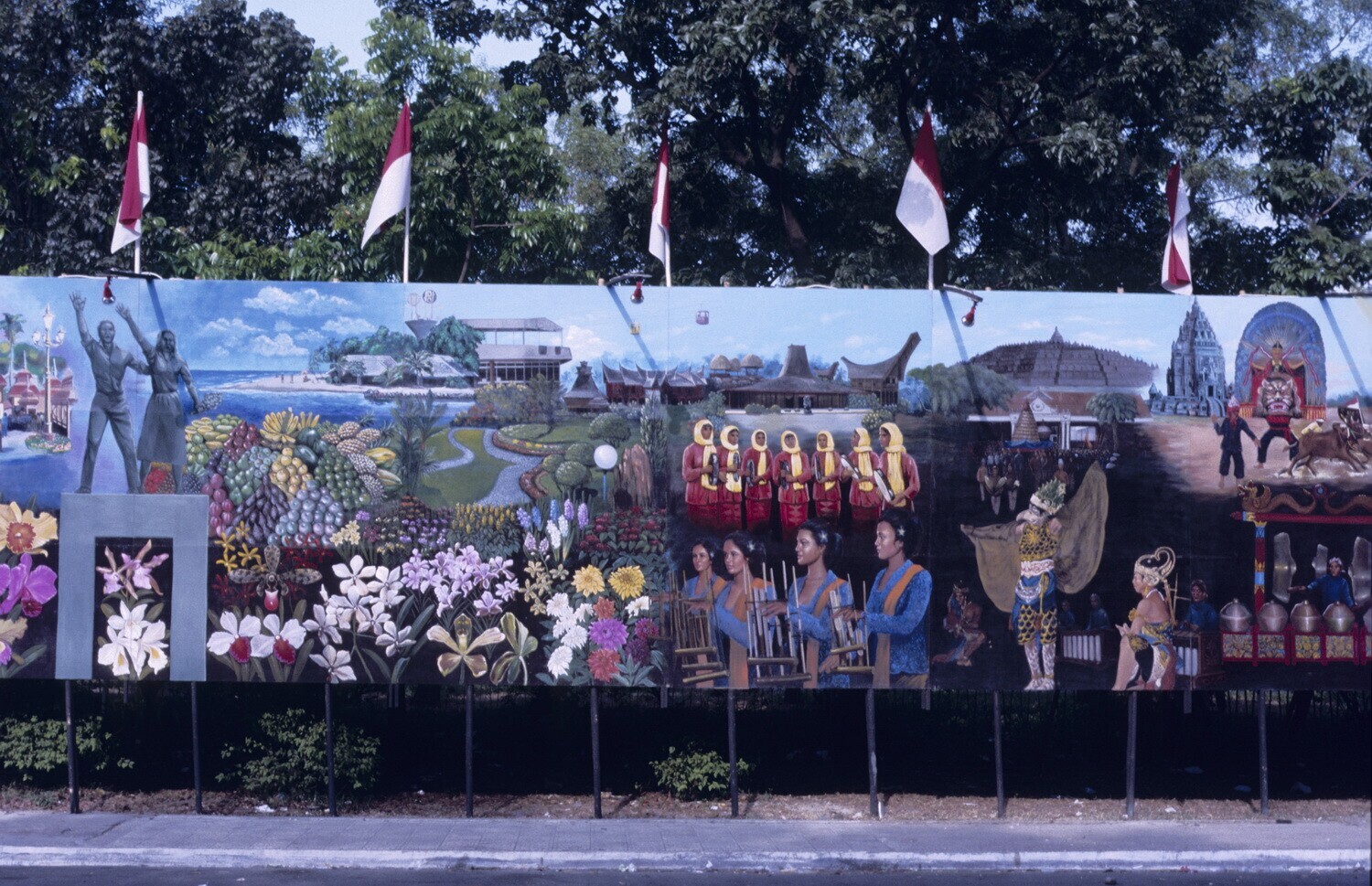 Bord met foto's over de geschiedenis van de Indonesi...