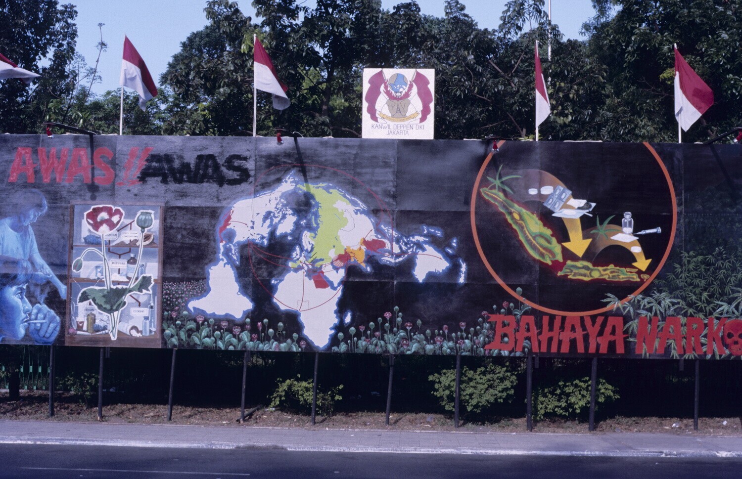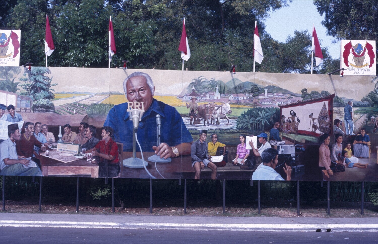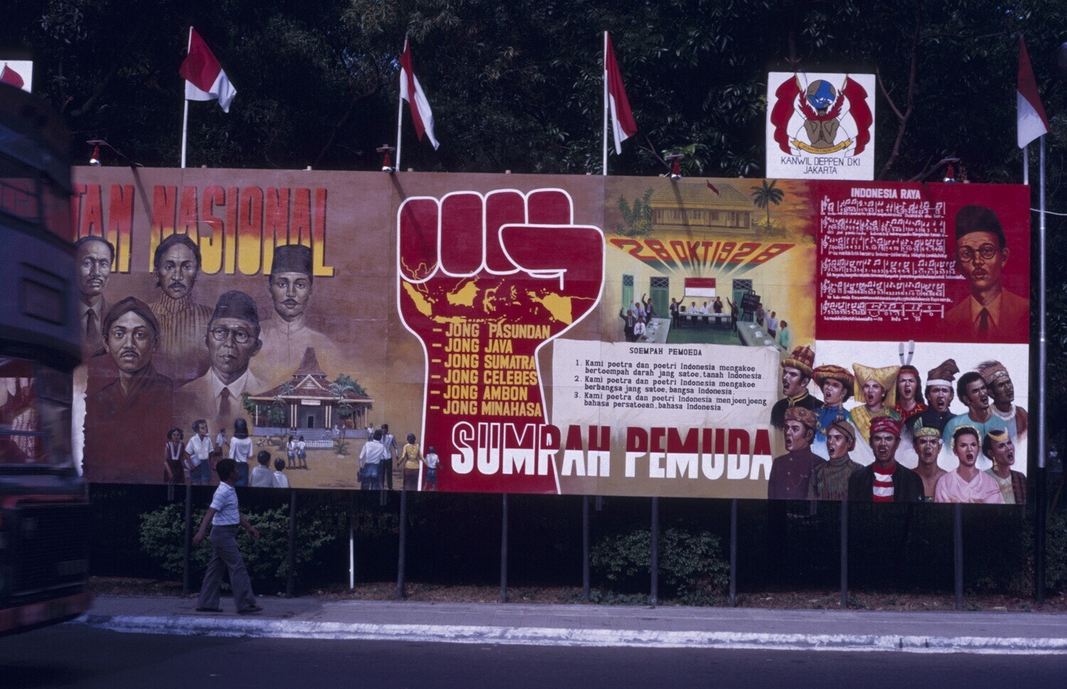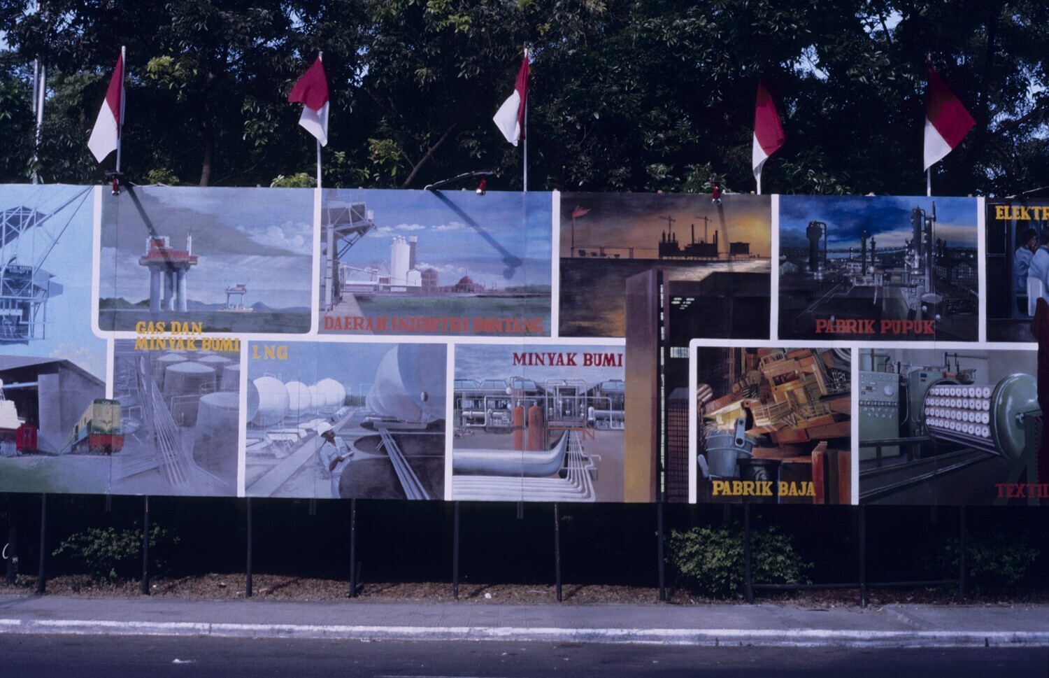 Bord met foto's over de geschiedenis van de Indonesi...