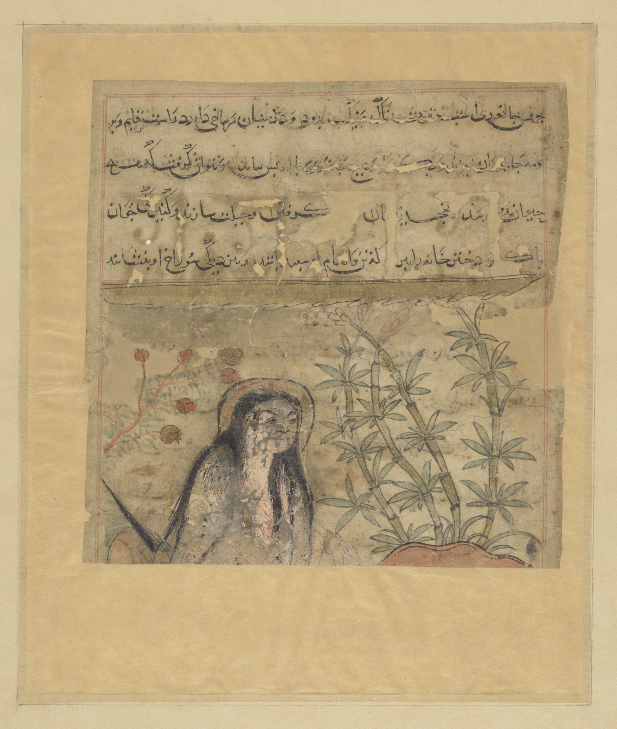 Vrouw met bamboe en bloemen