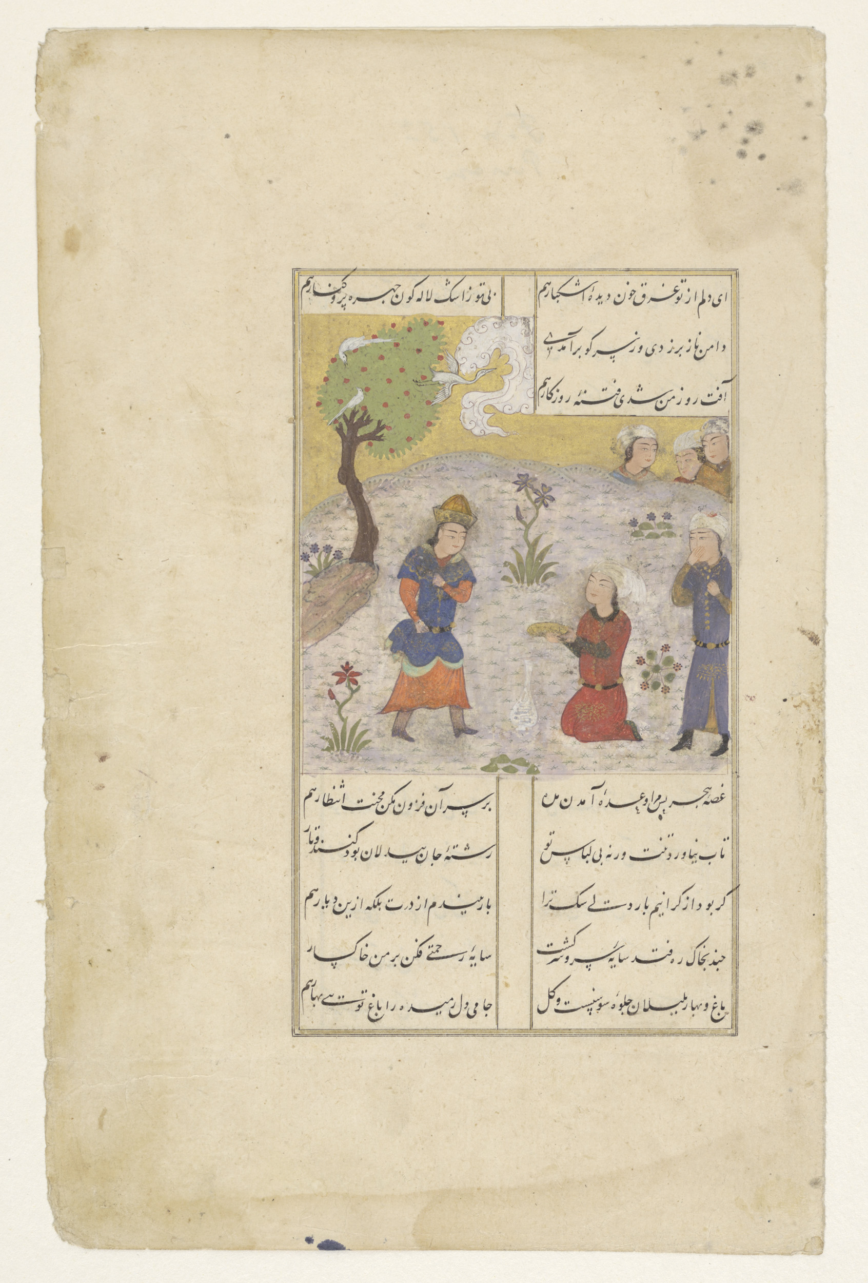 Krishna en twee vrouwen in een tuin