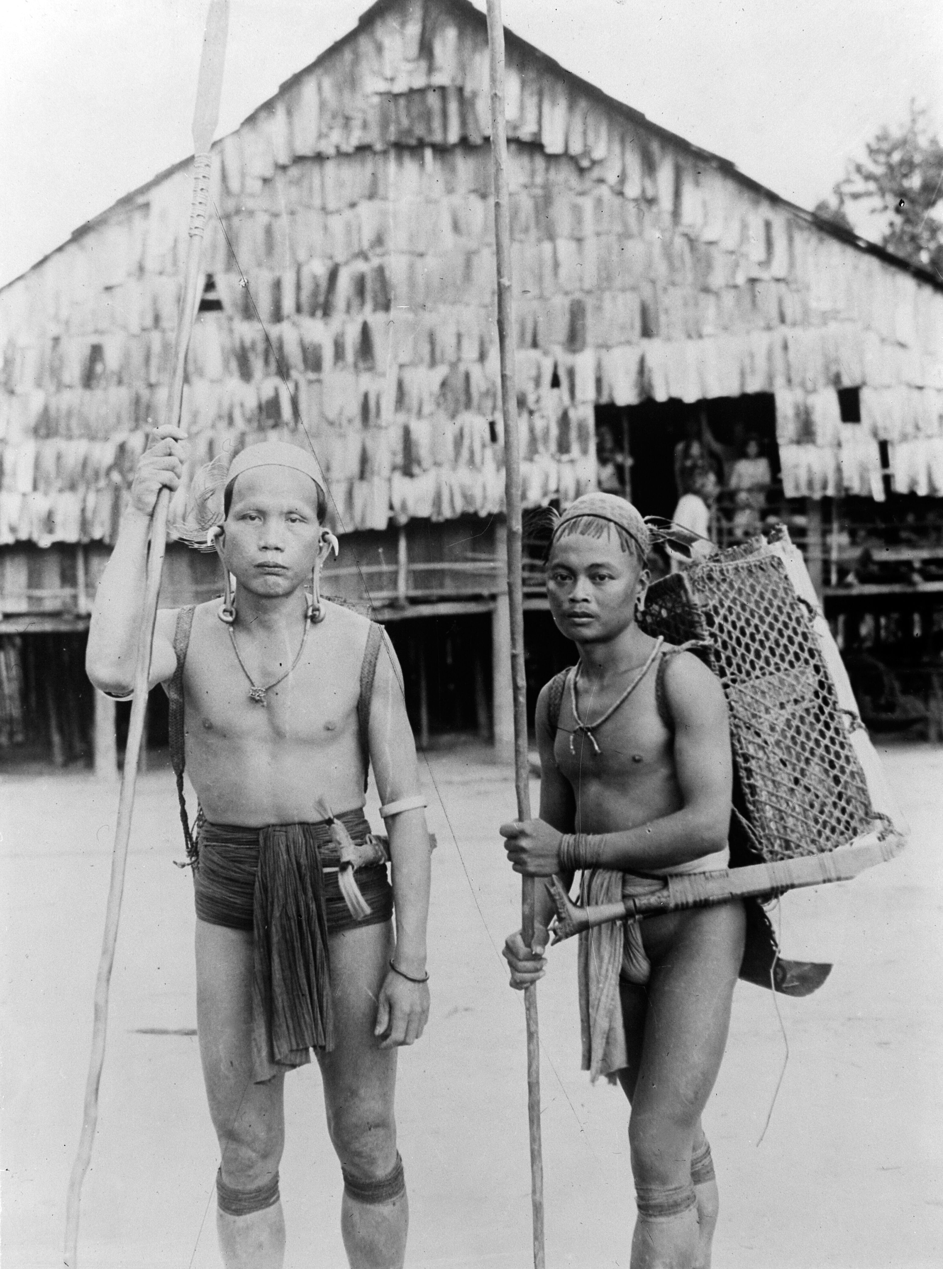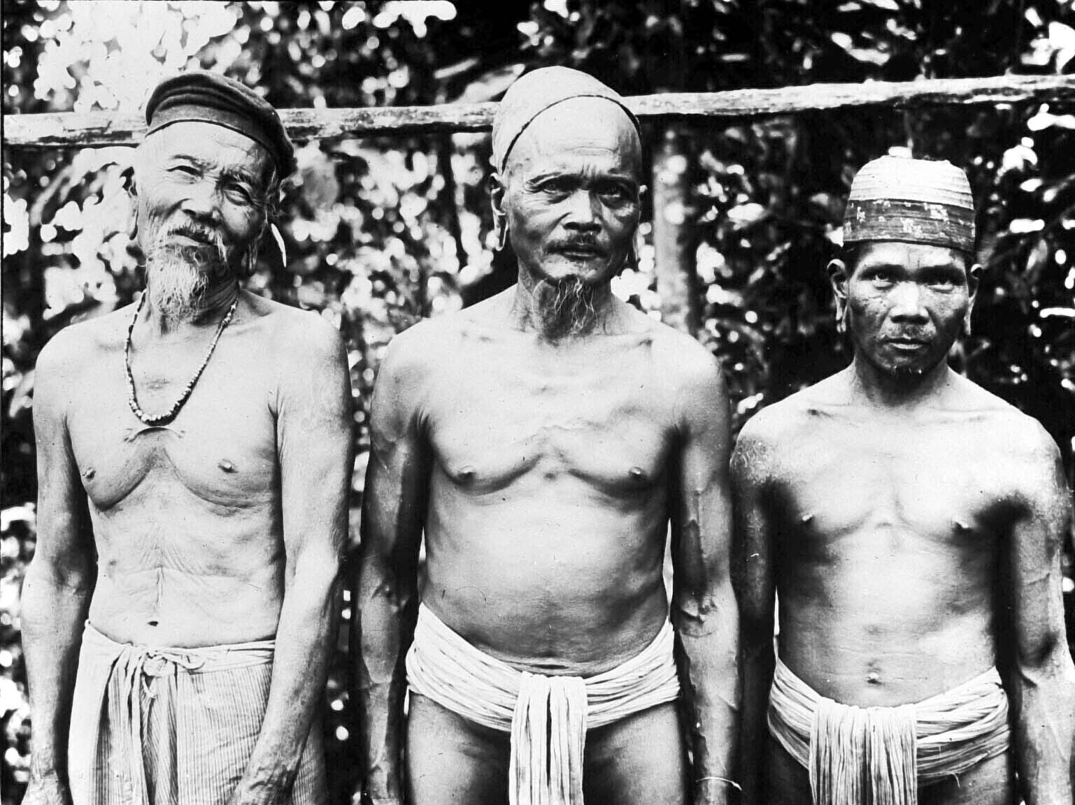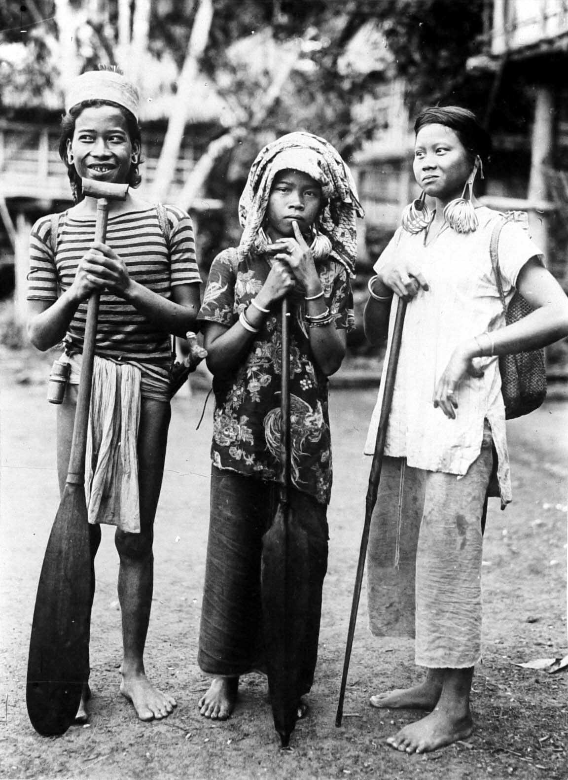 Drie Kayan-Dajaks, Midden-Oost-Borneo