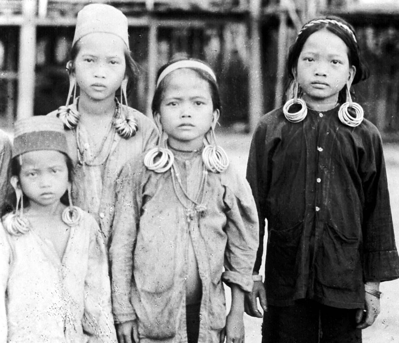 Kayan meisjes gedeeltelijk in feestkleding met oorri...