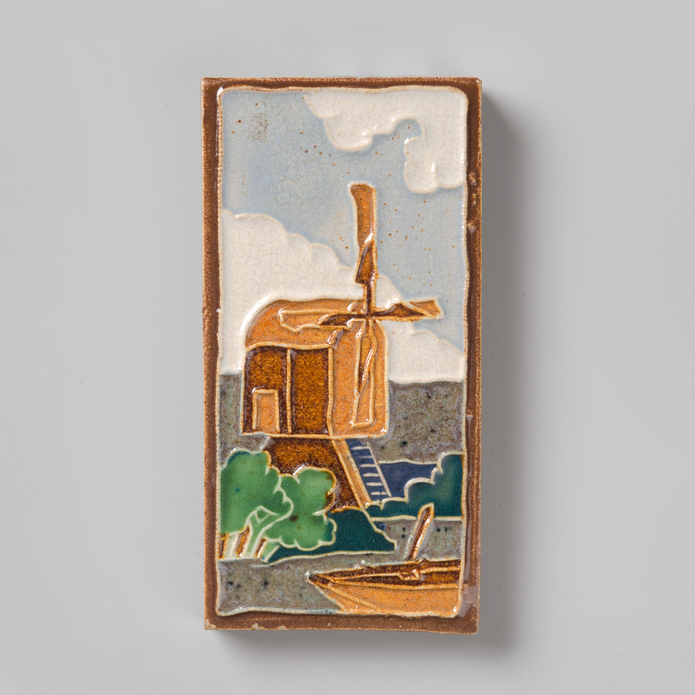 Tegel in cloisonné-techniek, met voorstelling: Stadh...
