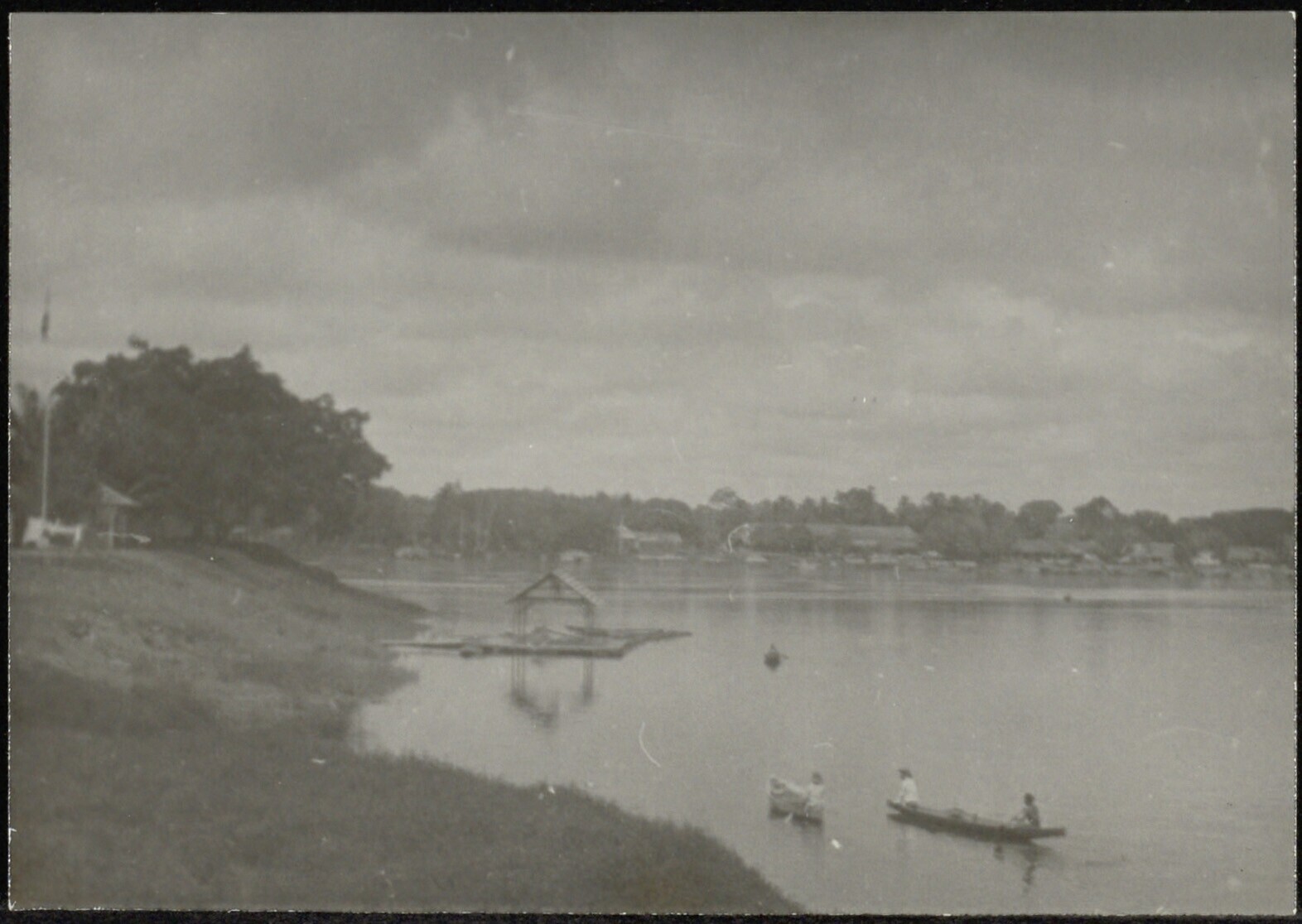 Gezicht op de oever van de Kapuas-rivier in West-Borneo