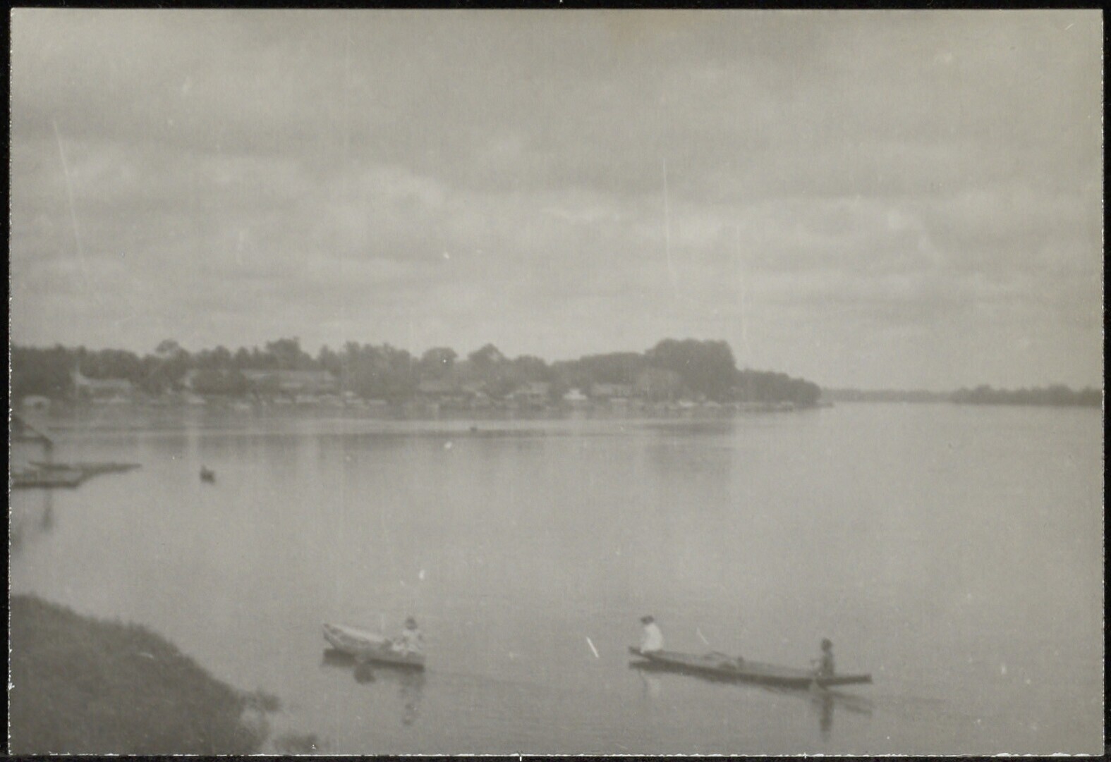 Prauwen varend langs de oever van de Kapuas-rivier i...