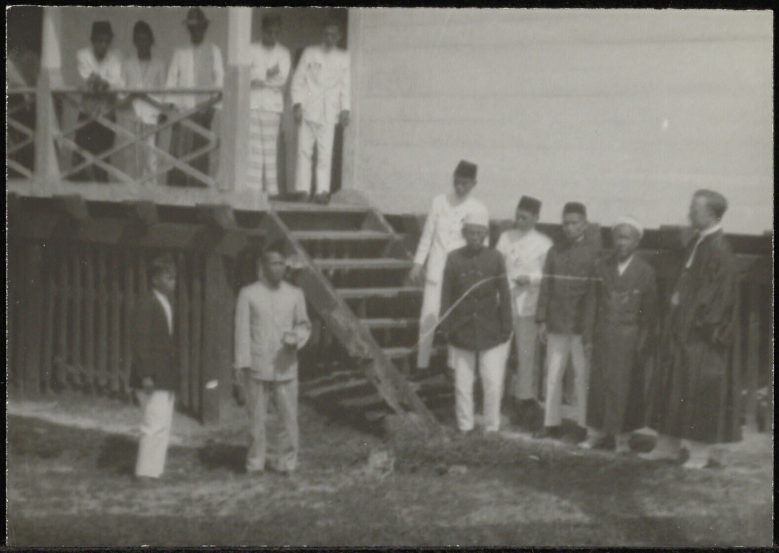 Groep leden van de inheemse bevolking rond de ingang...