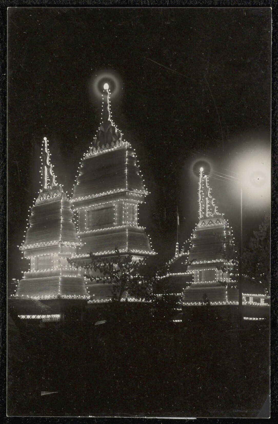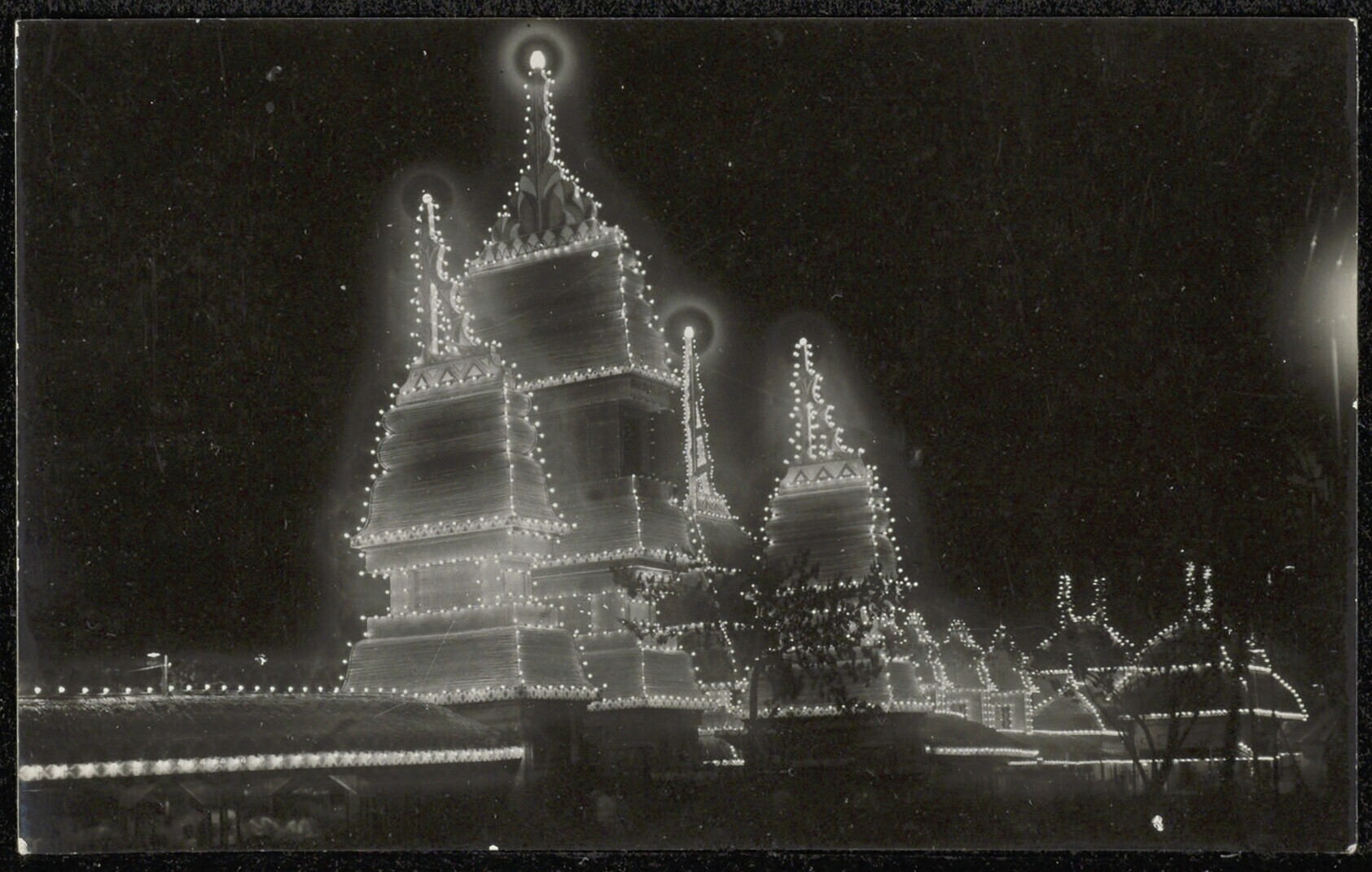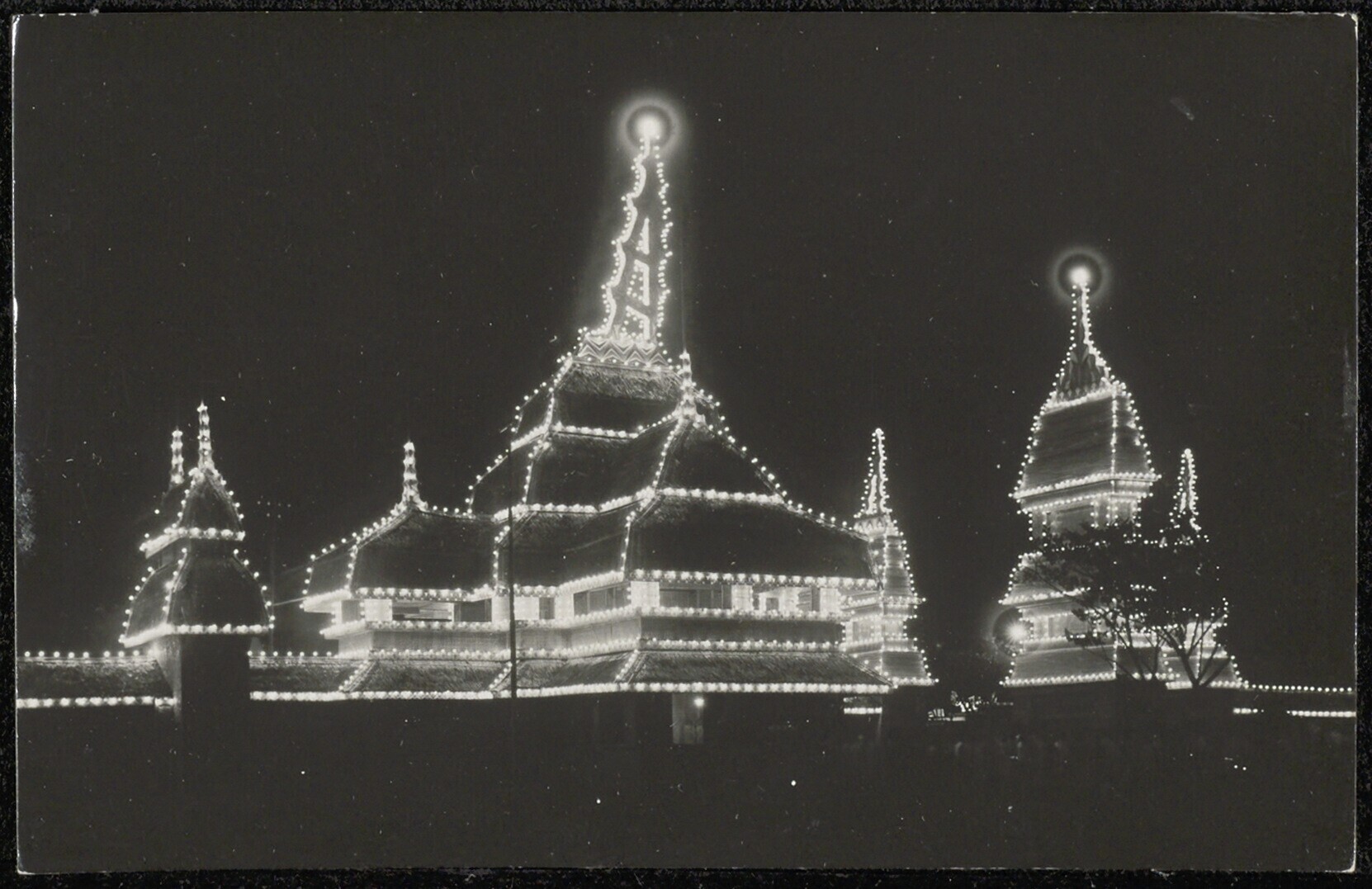 De 's avonds verlichte paviljoens op de Pasar Gambir...