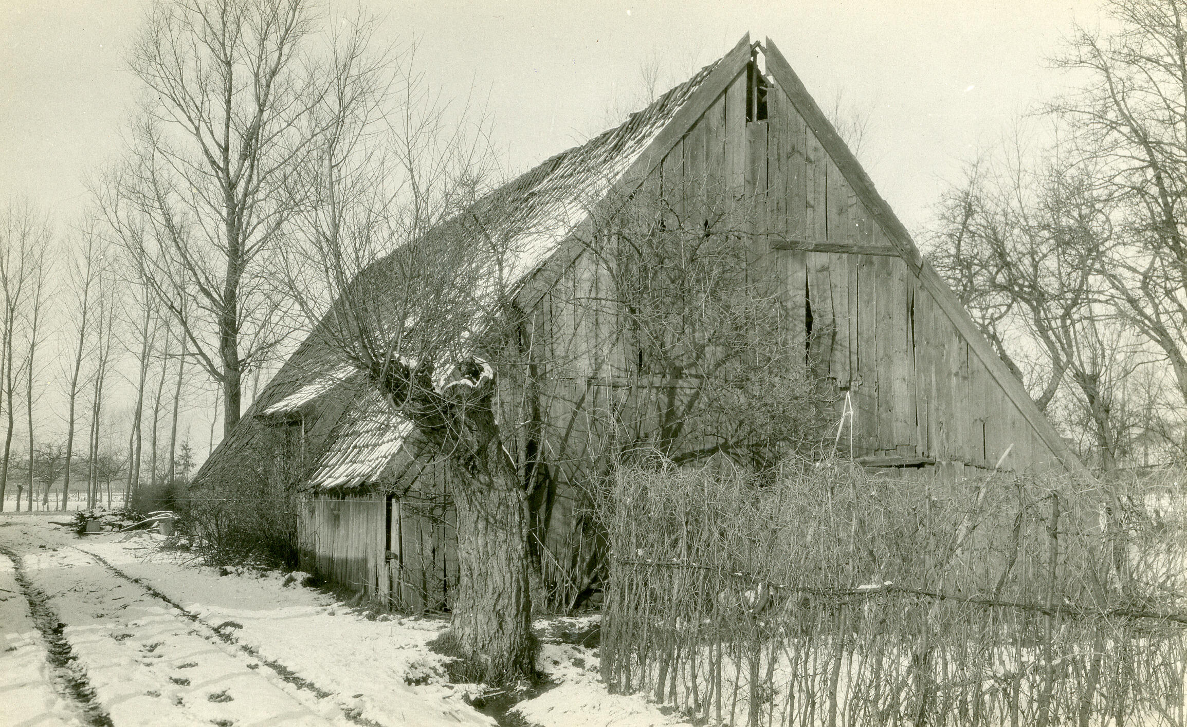 Tabaksschuur, Wageningen, 1930 (zwart-wit foto)