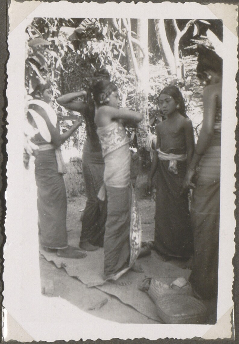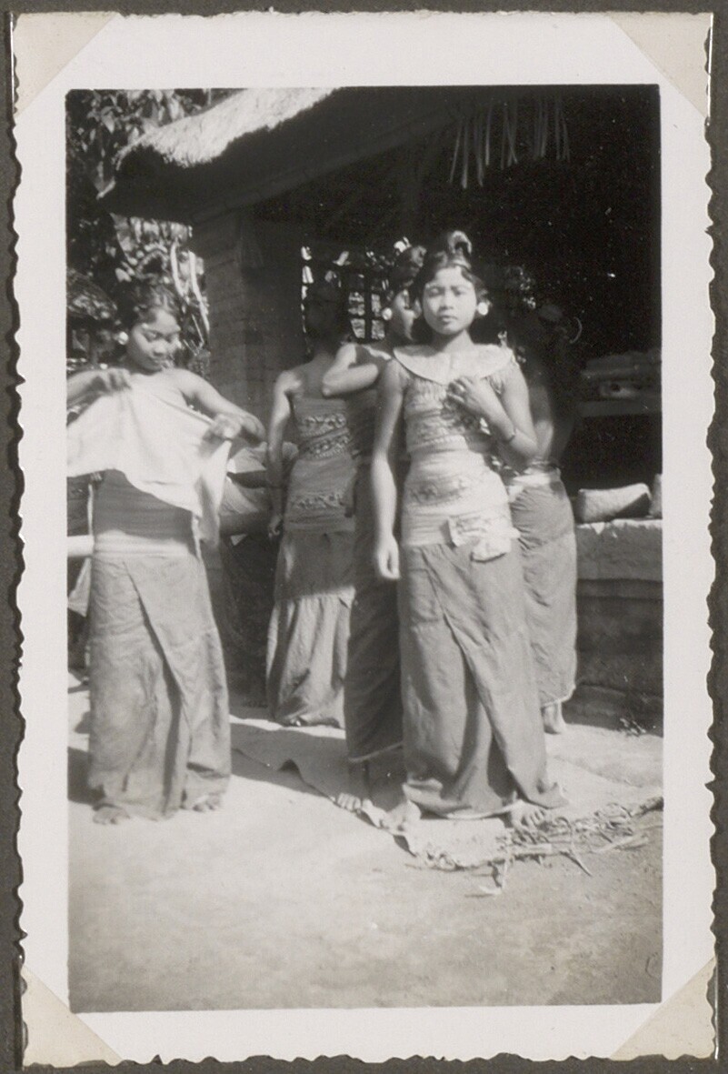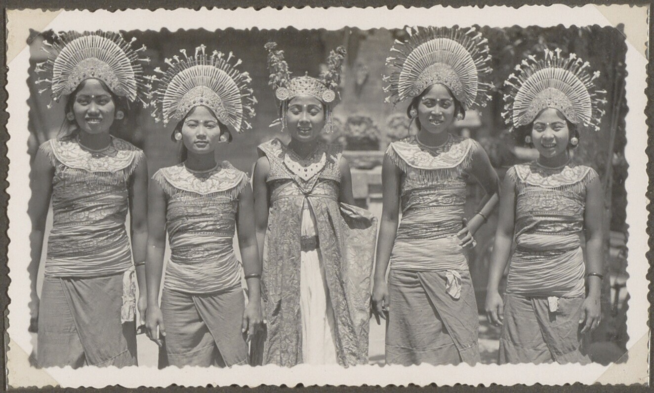 Portret van vijf Balinese danseressen