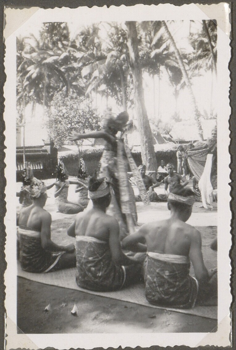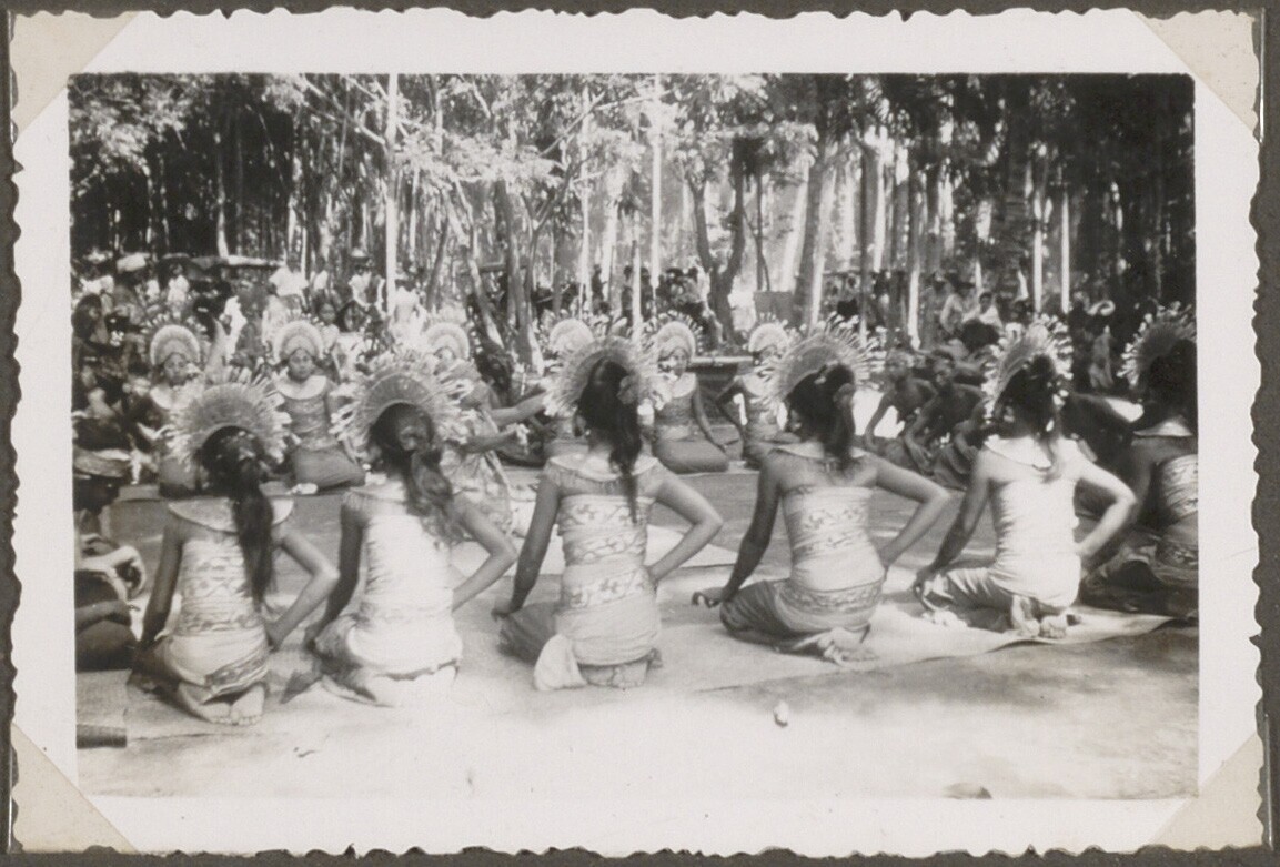 Uitzicht op een groep Balinese danseressen