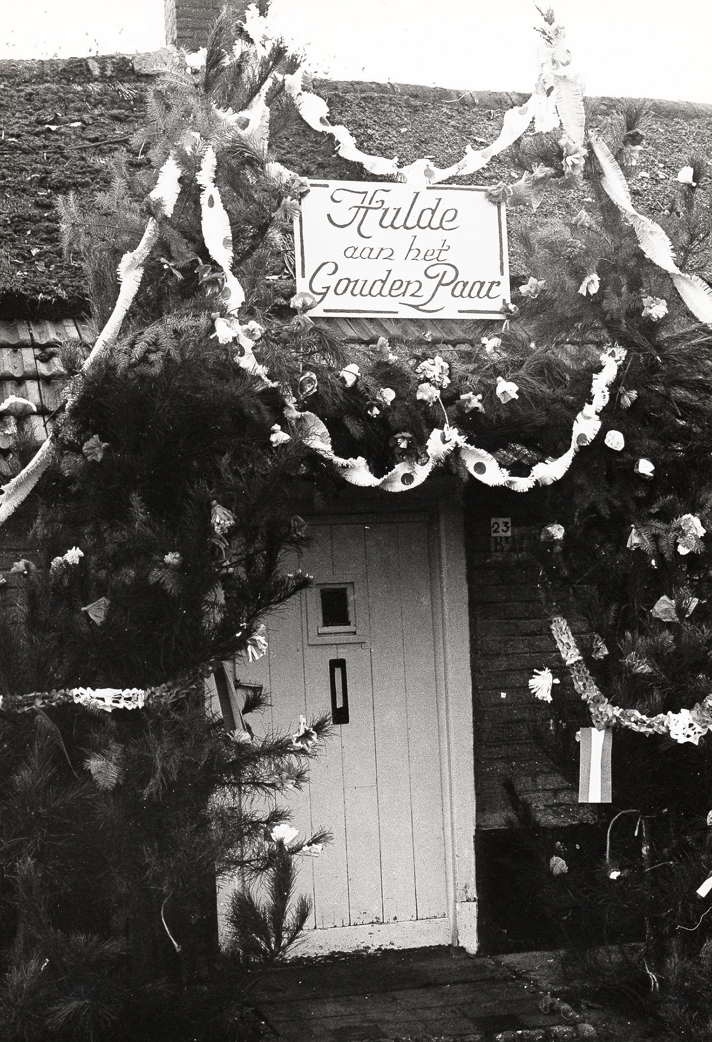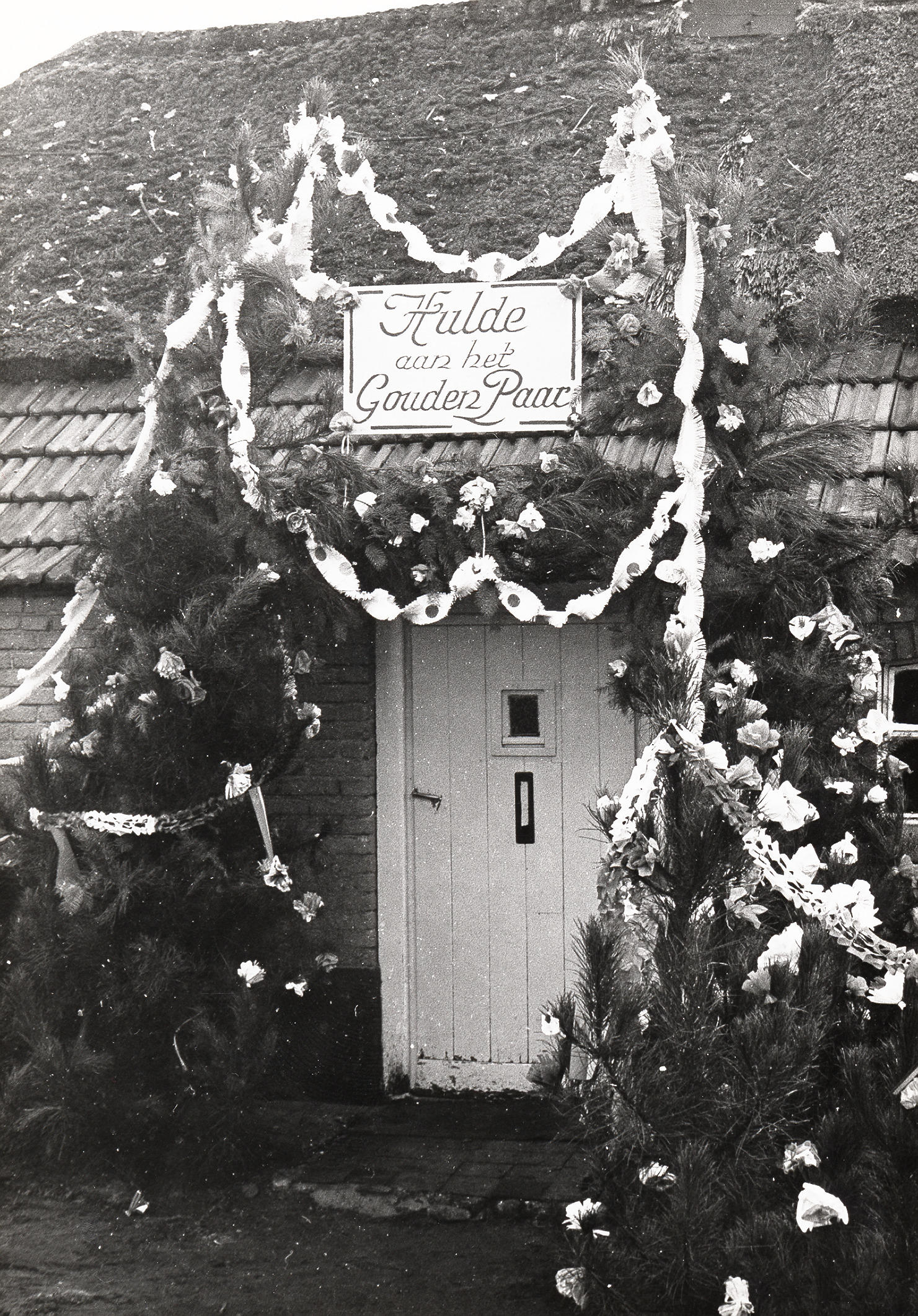 Feestversiering, Heesch, 1970 (zwart-wit foto)