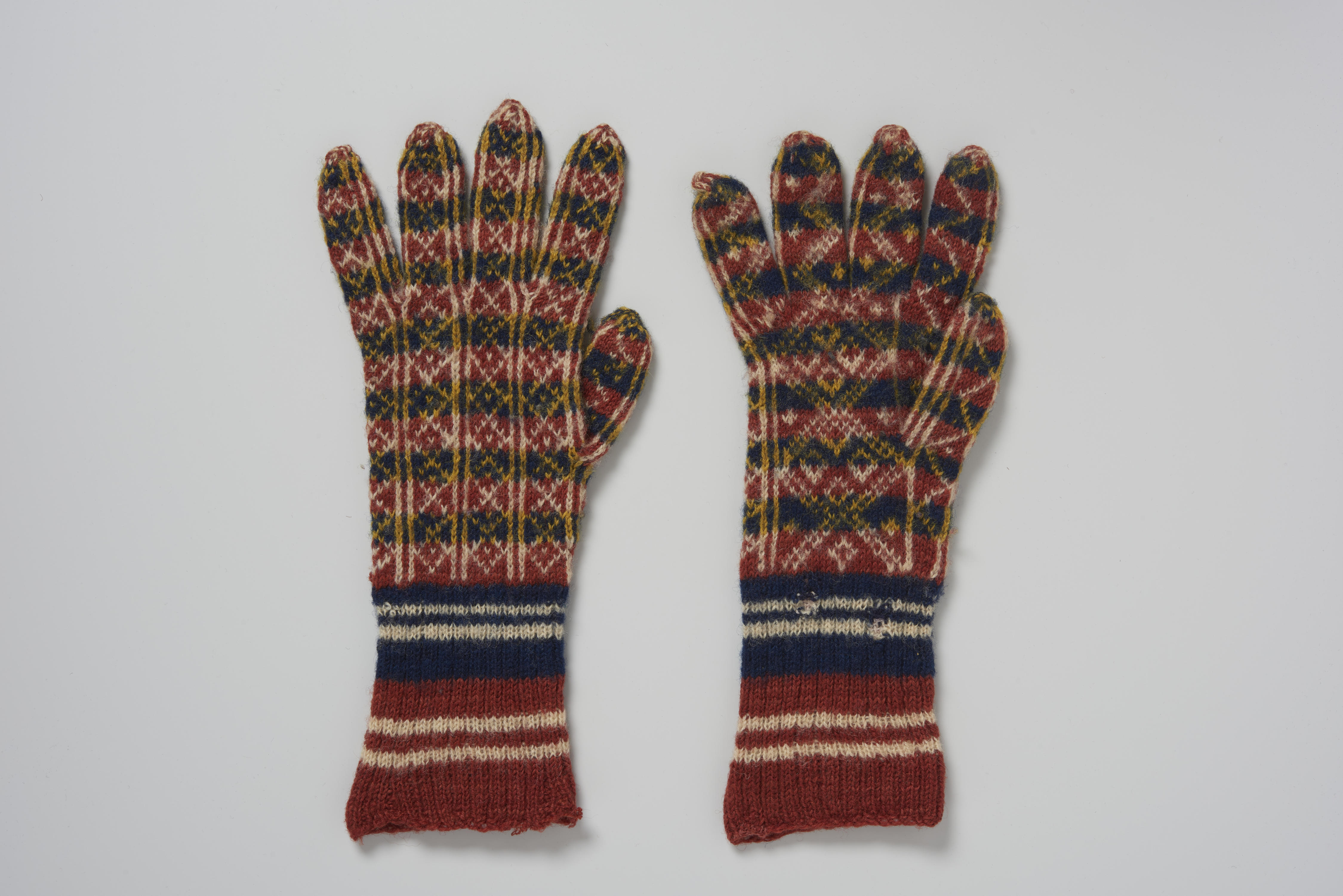 Paar handschoenen met ingebreide motieven, Marken, v...