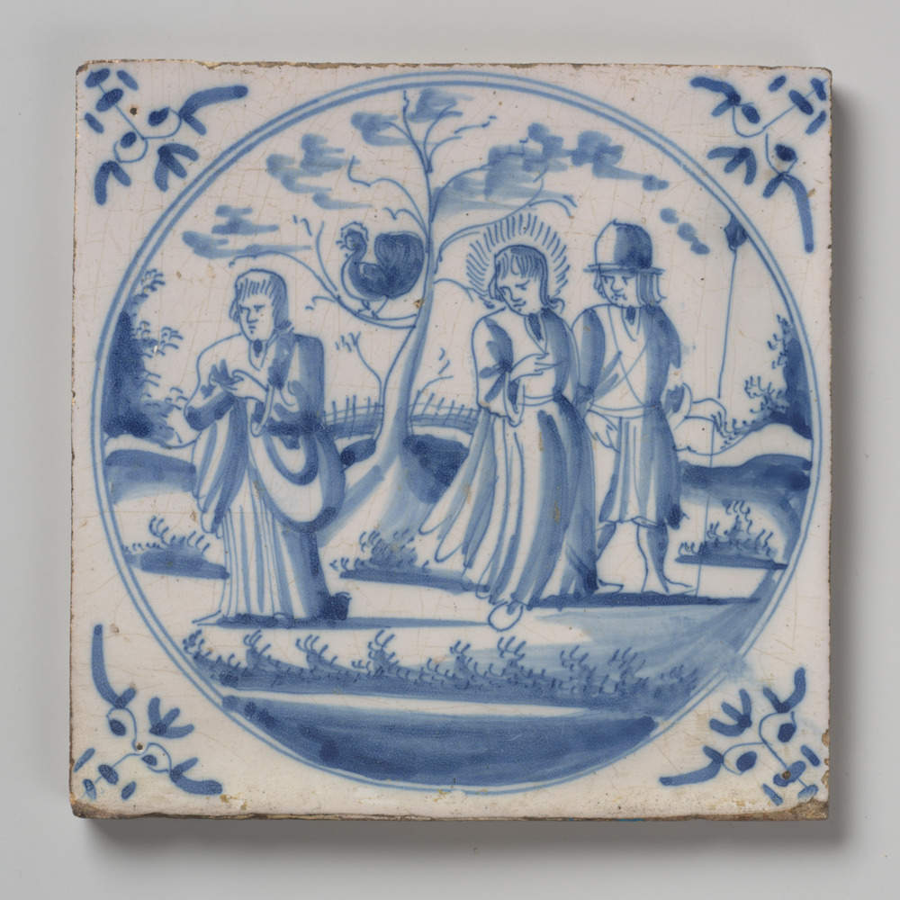tegel van aardewerk met tinglazuur, voorstellende: h...