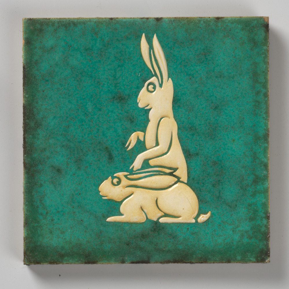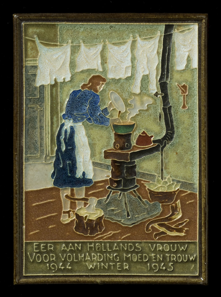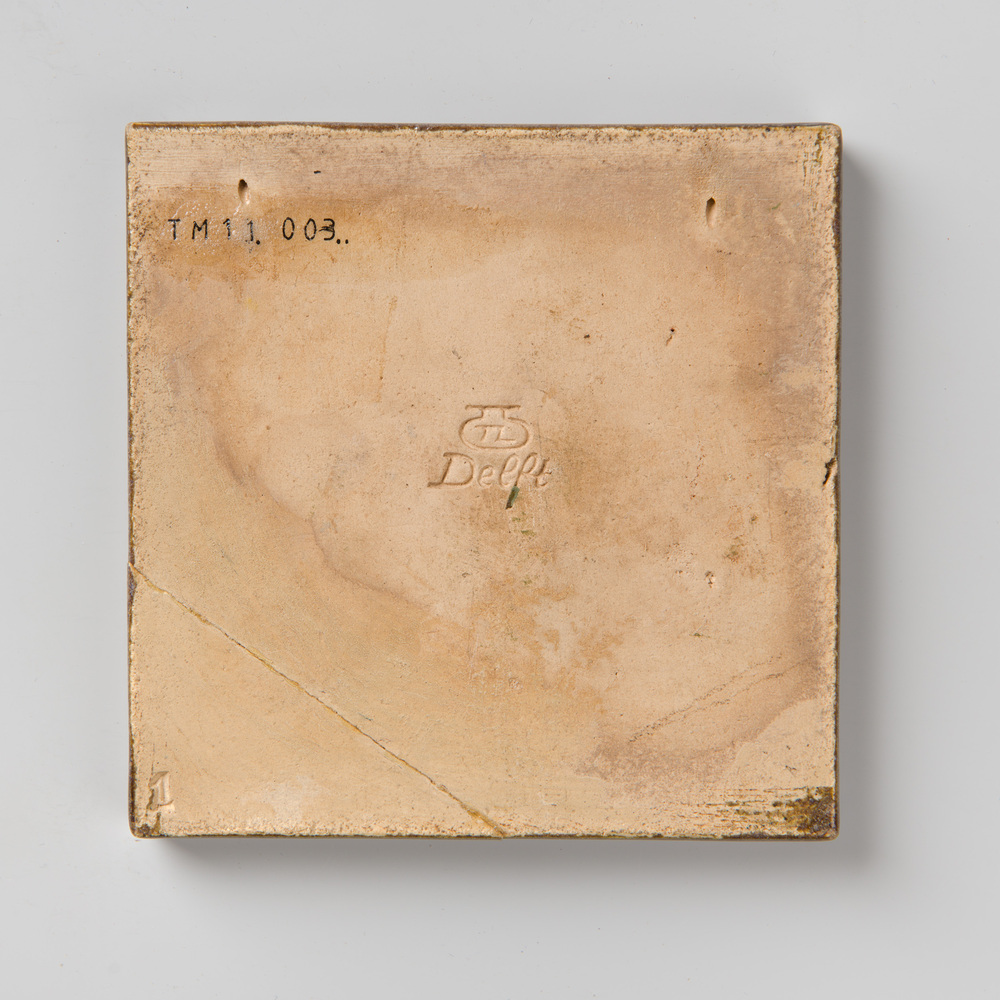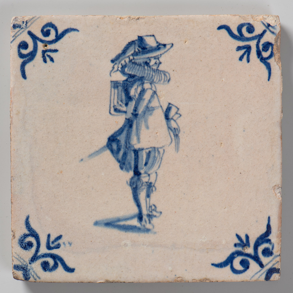 tegel van keramiek met tinglazuur, voorstellende: so...
