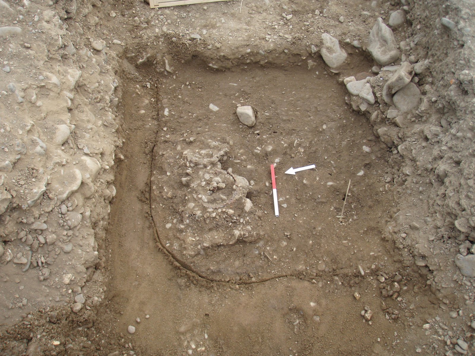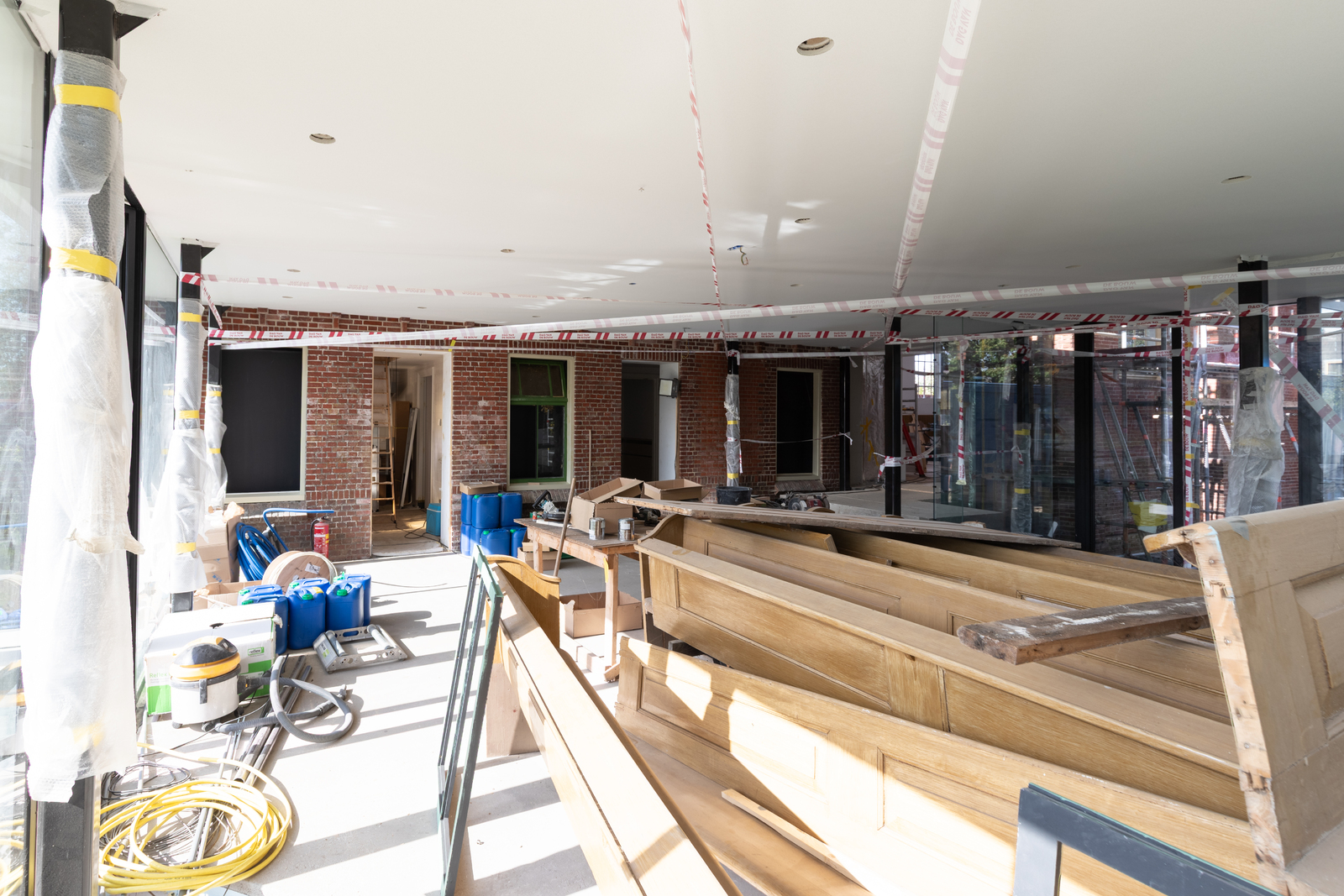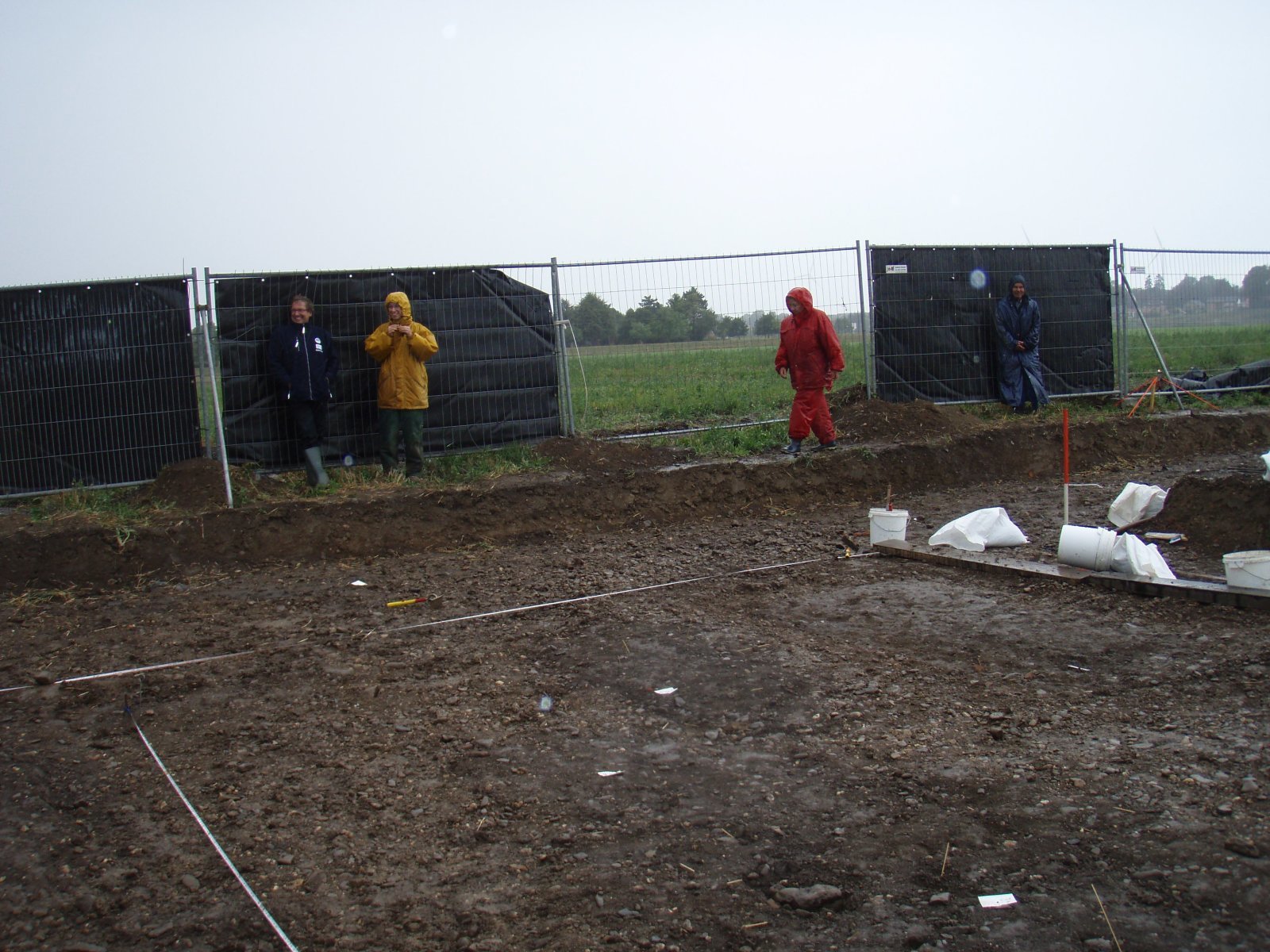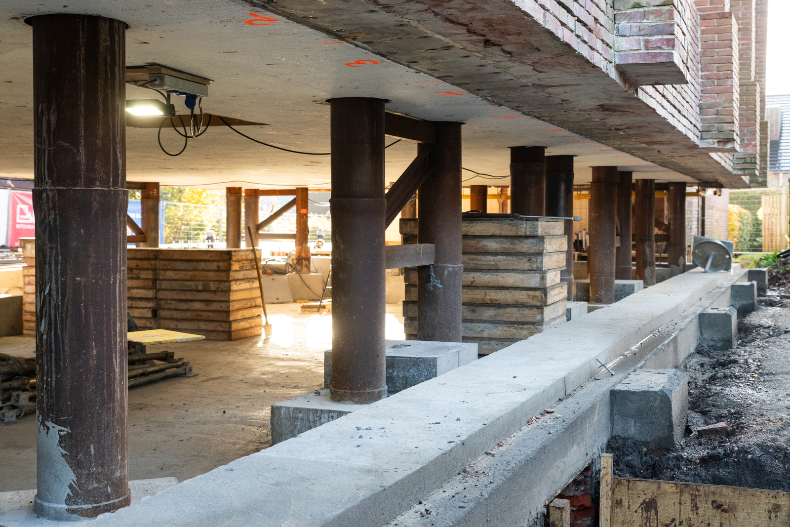 Funderingswerkzaamheden, met omhoog gevijzelde kerk