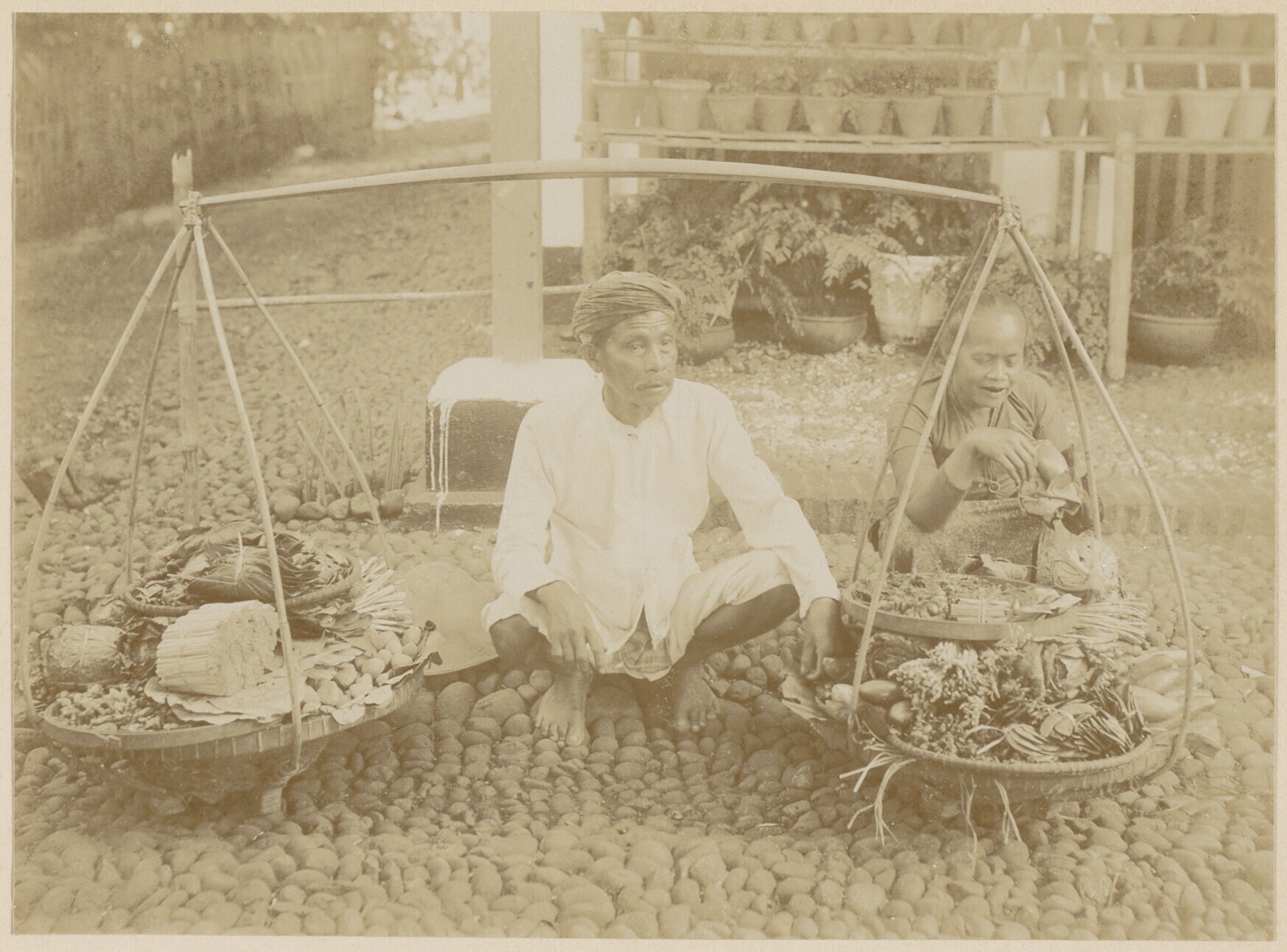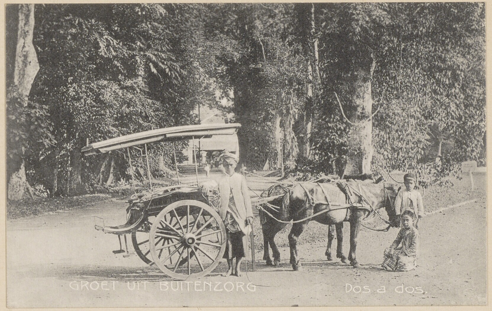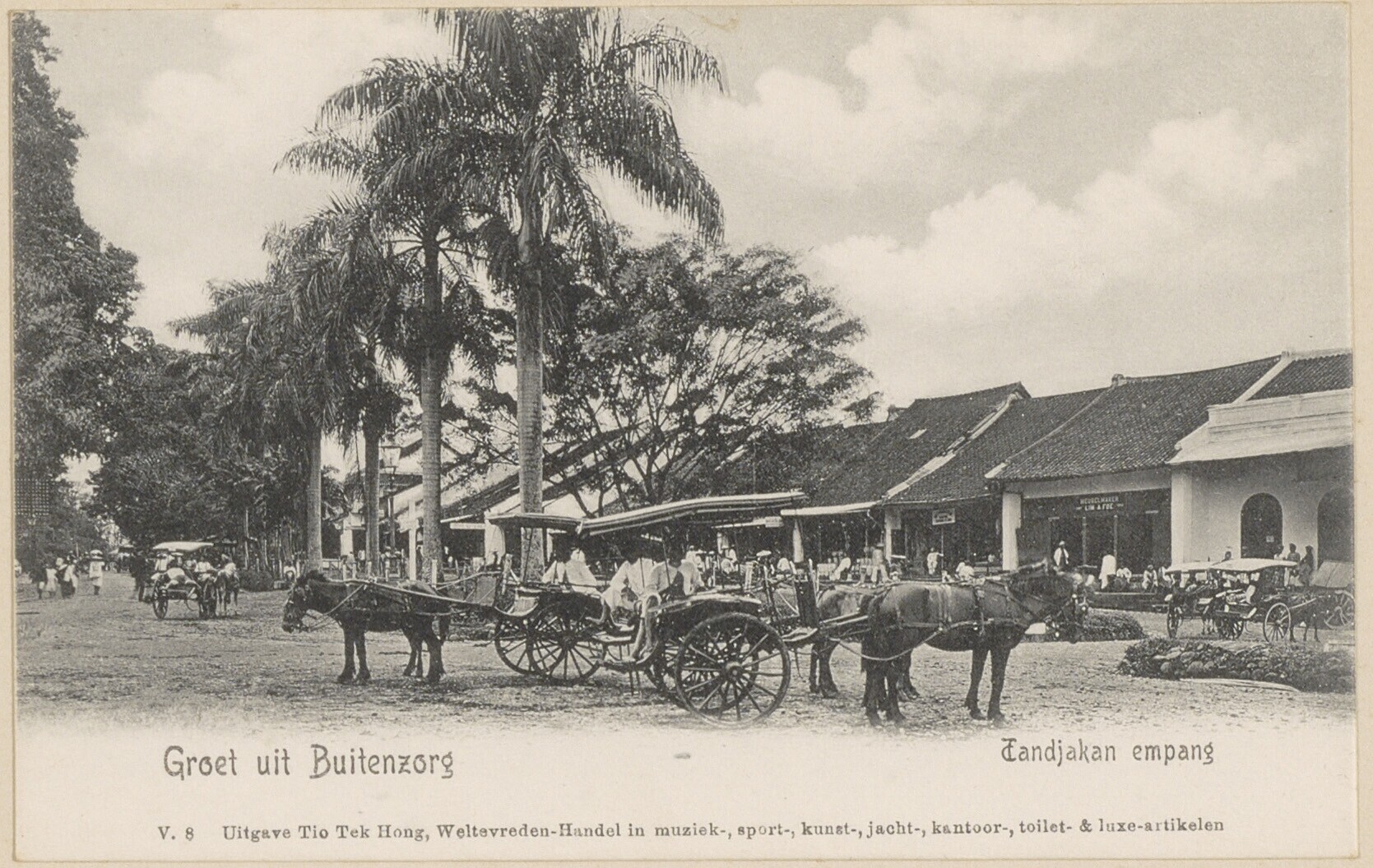 Straatbeeld op Java met een tram rechts op de voorgrond