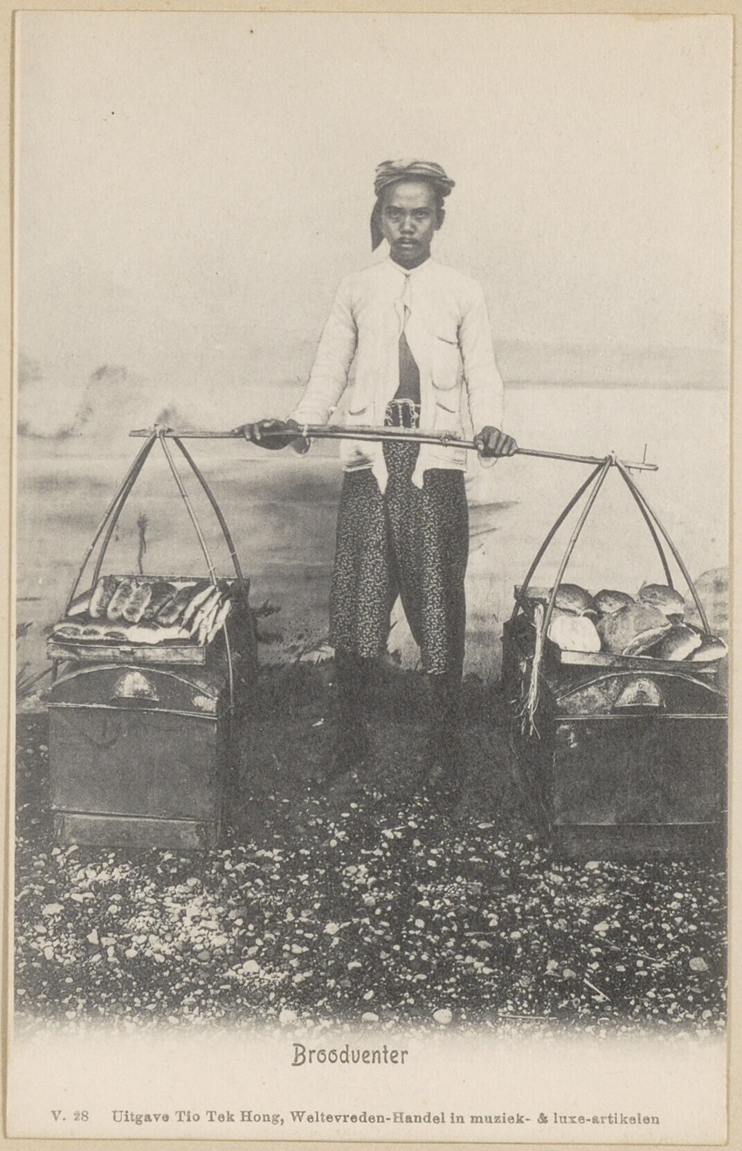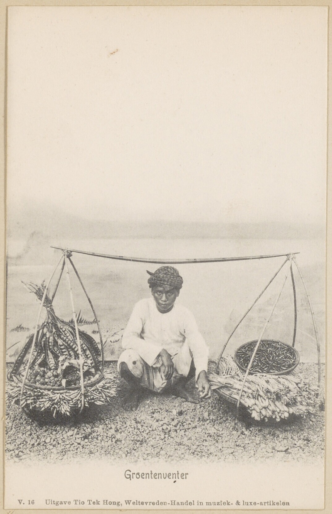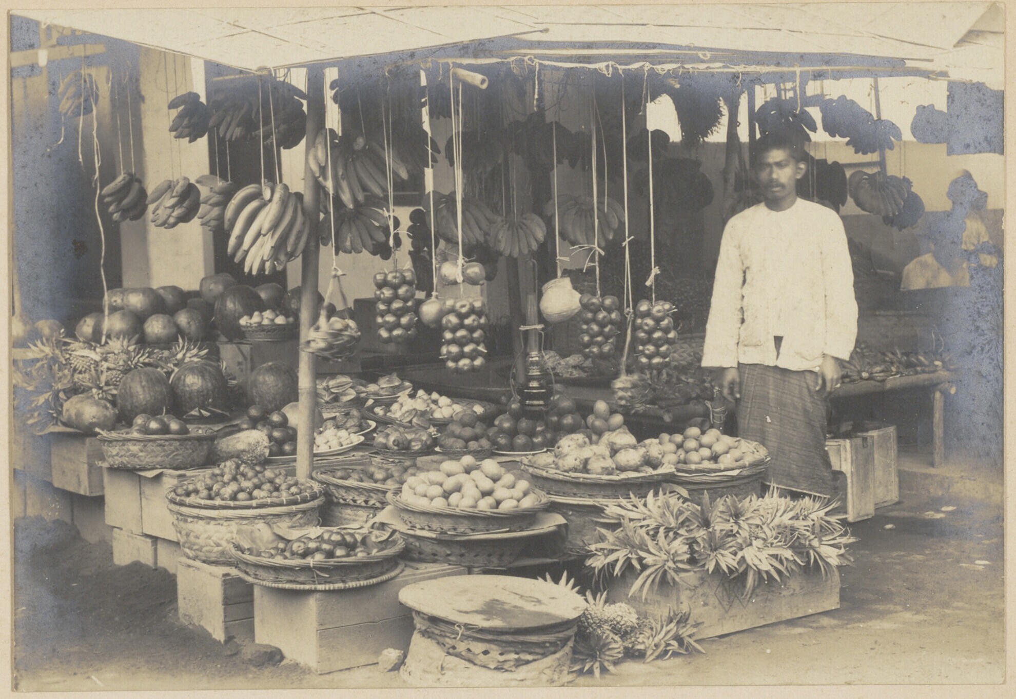 Straatbeeld op Java met een tram rechts op de voorgrond