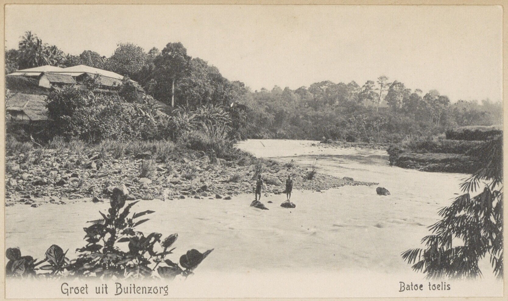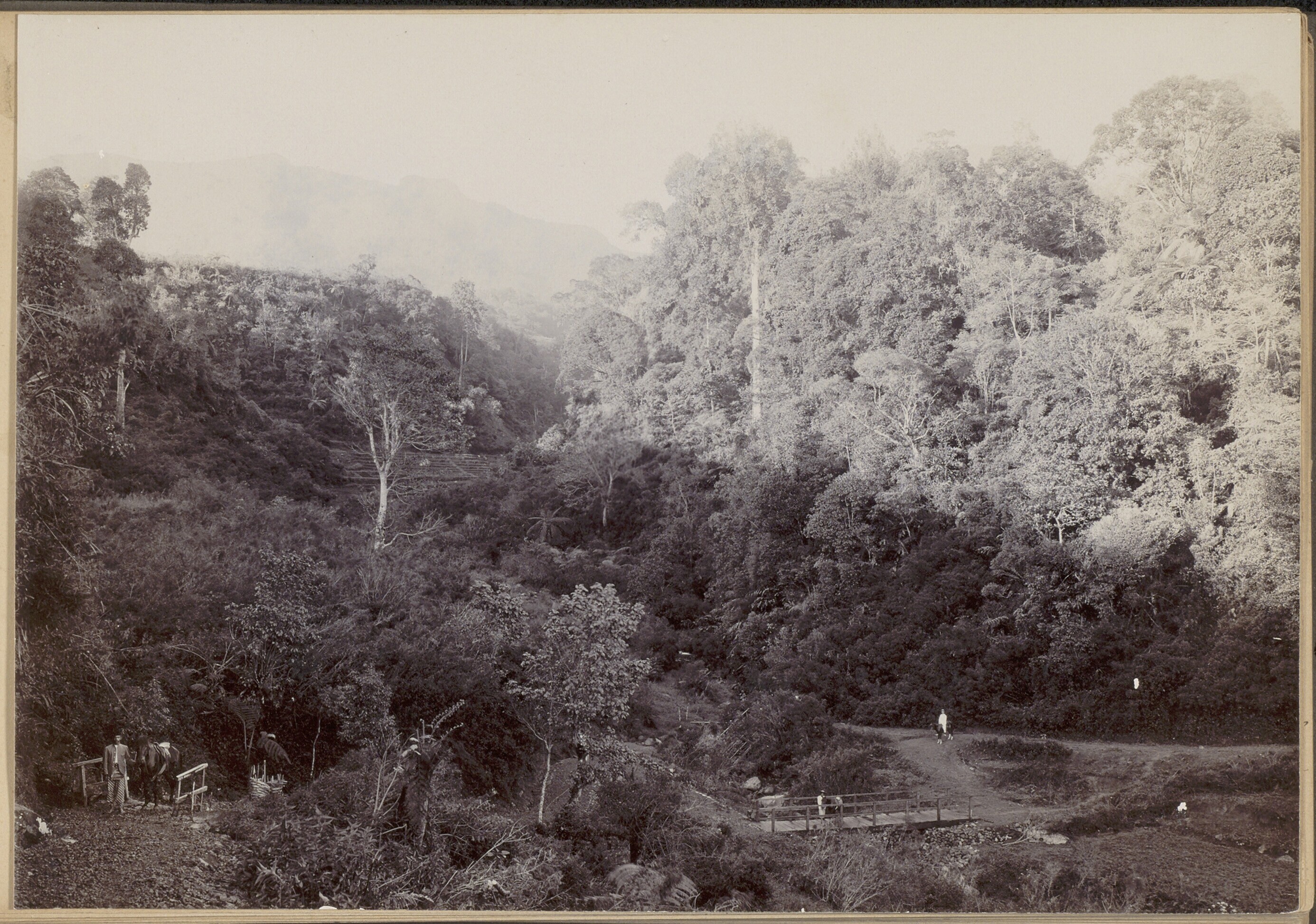 Uitzicht op het laboratorium te Tjibodas met op de v...