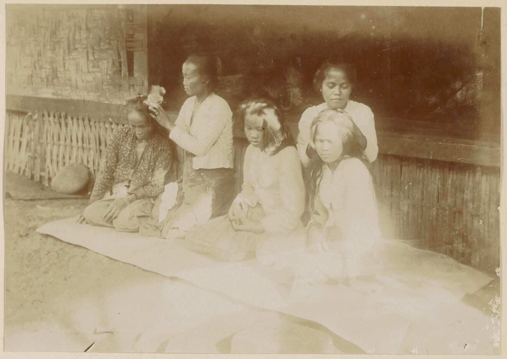 Groep vrouwen zitten bij elkaar te Wedi, Jawa tengah