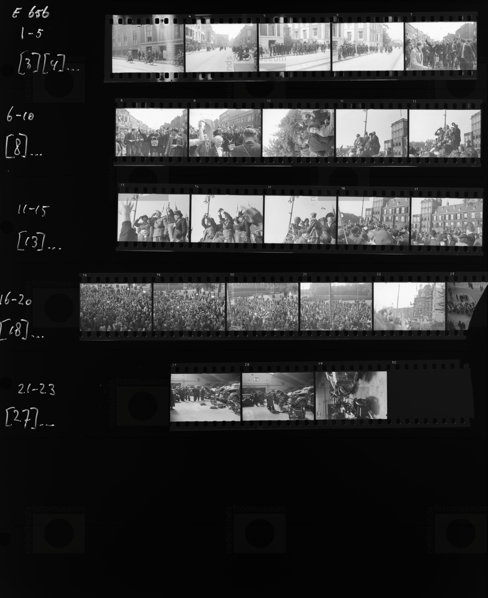 Geallieerde voertuigen rijden tijdens hun intocht vo...